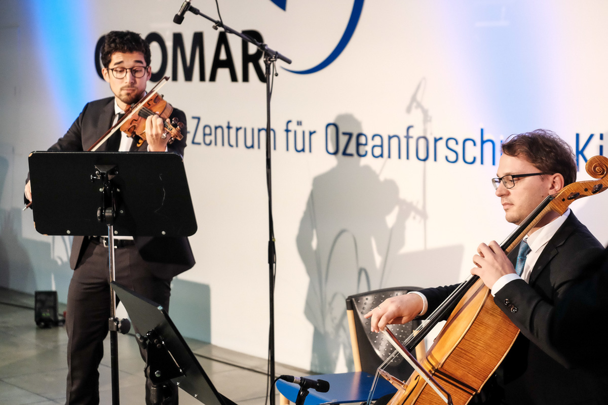 Lukas Mimura, Violine, und Peter Krause, Violoncello, untermalen den Festakt mit Stücken von Antonio Vivaldi, Ludwig van Beethoven sowie Michael Jackson.
