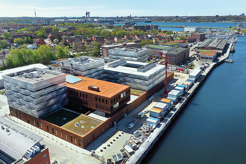 Aerial view of the site on Kiel's eastern shore before removal of the old buildings. Photo: Andreas Villwock/GEOMAR.