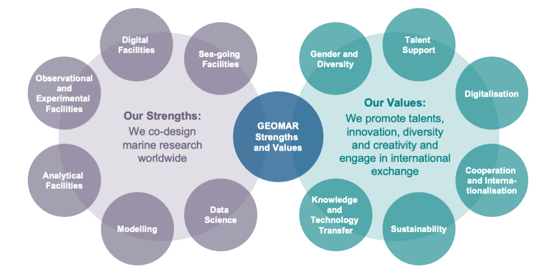 The research is supported by the values and strengths of the centre. This includes Gender and Diversity, Cooperation and Internationalization, Talent Support, Knowledge and Technology Transfer, Digitalization and Sustainability as well as Modelling, Analytical Facilities, Seagoing Facilities, Observational and Experimental Facilities, Digital Facilities and Data Science.