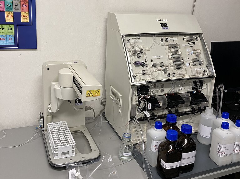Automated device for the simultaneous determination of nutrients (nitrate, nitrite, phosphate, silicate) in seawater samples (CFA Analysis).