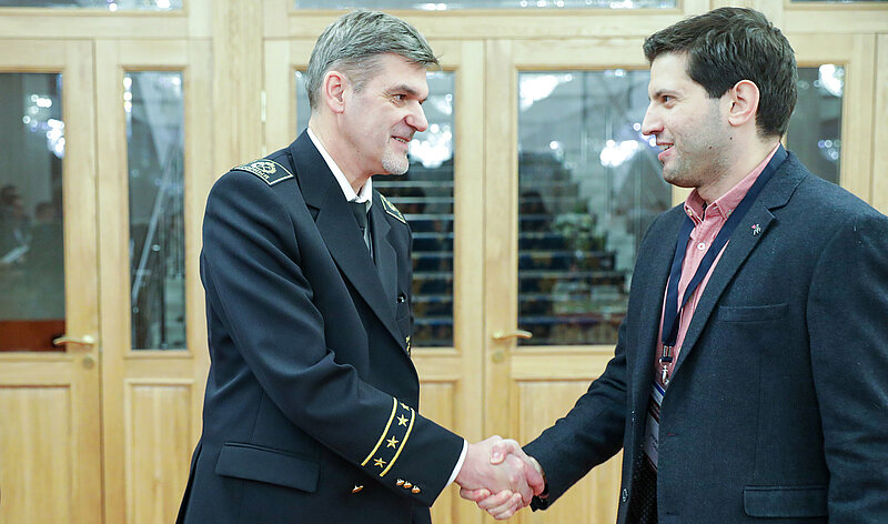 On 19 February 2026, Iason Zois Gazis received the prize for his outstanding doctoral thesis, which, among other topics emphasised the involvement of sea-going research vessels in deep-sea research. (Photo credits: IOW/Dr. Kristin Beck)