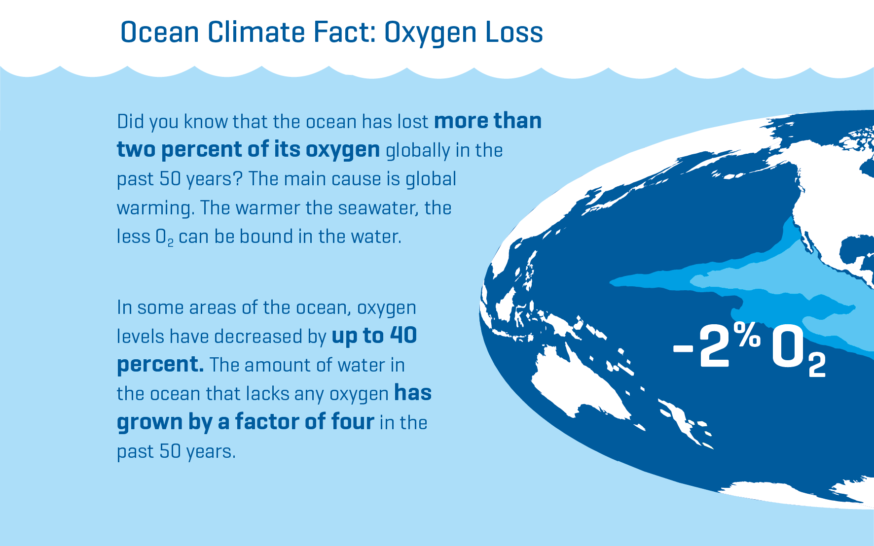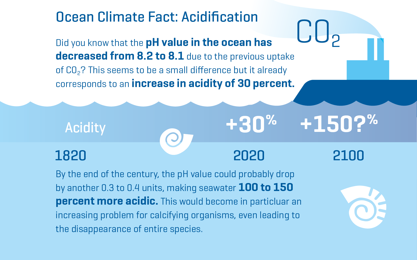 The ocean is our partner in the fight against climate change: By absorbing heat energy, it delays the effects of climate change. The natural uptake of carbon dioxide from the atmosphere also helps to mitigate climate change. In addition, it provides us with oxygen and contributes to our well-being through many other functions. These services are priceless – and yet they come at a price: The ocean is warming, losing oxygen, and the water is becoming more acidic. We are feeling the effects of climate change on the ocean more and more clearly.