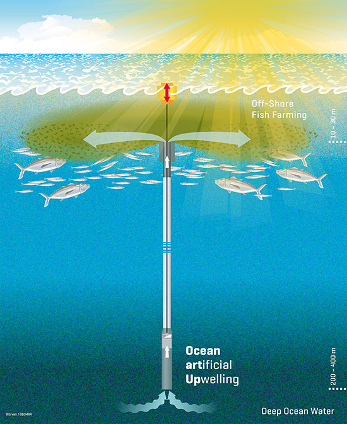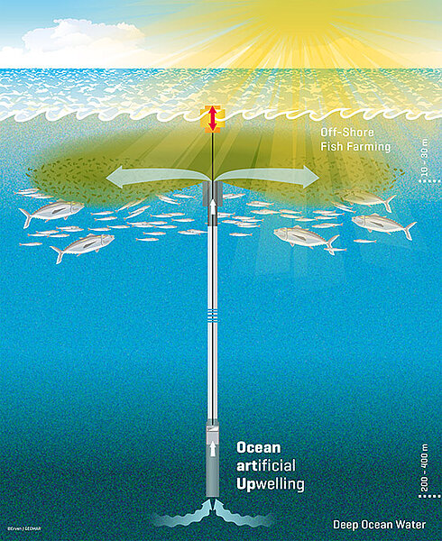 In addition, a wave-driven pump was deployed in the Atlantic Ocean south of the Canary Islands. Using only wave energy, the pump brought nutrient-rich water from 200 meters depth up to the sunlit surface layer, where they can be utilized by phytoplankton, microalgae that build the base of the oceanic food web. The test provides insights into the feasibility of using wave energy to bring deep water to the surface for the purpose of enhancing oceanic carbon dioxide uptake. In addition, an extensive measurement program accompanying the deployment is intended to provide information on the effects of artificial upwelling on marine life.
