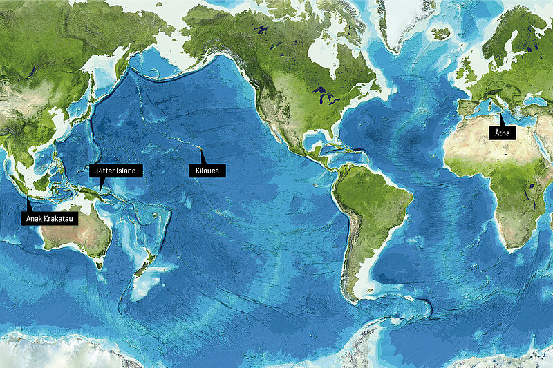 Volcanoes are among the most rapidly growing geological structures on Earth. Consequently, their edifices can be mechanically unstable and volcano flank collapses can form giant destructive landslides as in the case of the 1980 Mount St Helens collapse. At ocean island or coastal volcanoes these events pose an even larger threat as the sudden displacement of large amounts of material in water can cause tsunamis with extreme and ocean-wide effects. Slow seawards sliding of volcano flanks as it is observed at numerous volcanoes globally, can also be an expression of edifice instability. The aim of PRE-COLLAPSE is to understand if and how these two types of motion, slow sliding and catastrophic collapse, are related. To get there we will combine field observations, laboratory experiments, and numerical modelling. What is new is that all methods cross the shoreline so that they capture the entire volcano edifice from the volcano’s summit in the sky to its toe in the deep sea. The investigations will focus on four volcanoes: Etna (Italy), Anak-Krakatau (Indonesia), Ritter Island (Papua-Neuguinea), and Kilauea (Hawaii, USA). The outcome will help us identify flanks that are in transition to collapse. PRE-COLLAPSE is a five-year Starting Grant project supported by the European Research Council.
