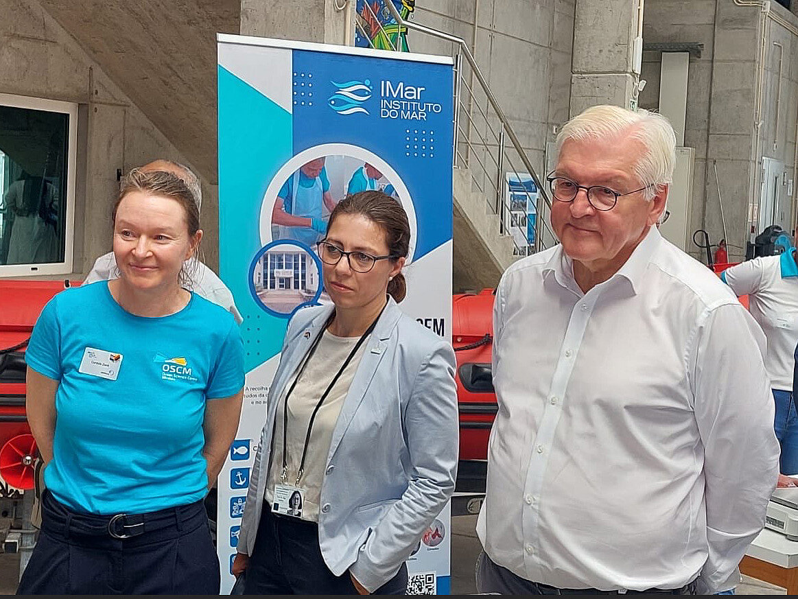 President Steinmeier learned about the importance of the OSCM for regional, national and international research during a joint tour of the institute with José Maria Neves, President of the Republic of Cabo Verde. He got to know the infrastructure of the OSCM and informed himself about the Cape Verde Ocean Observatory (CVOO), which is located about 100 kilometres off the islands as well as about the research of the IMar and the Universidade Técnica do Atlântico (UTA).