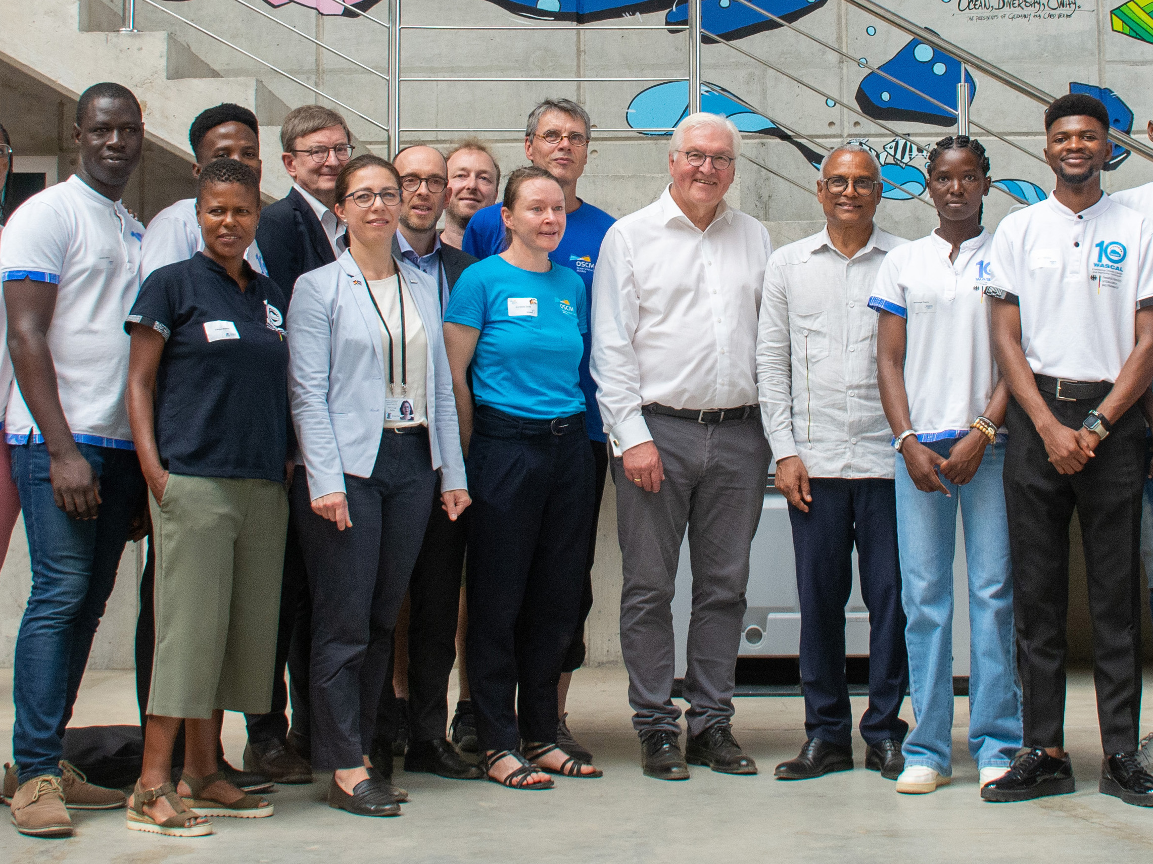 German Federal President Steinmeier with WASCAL students at the Ocean Science Centre Mindelo. Photo: Edson Silva Delgado, GEOMAR
