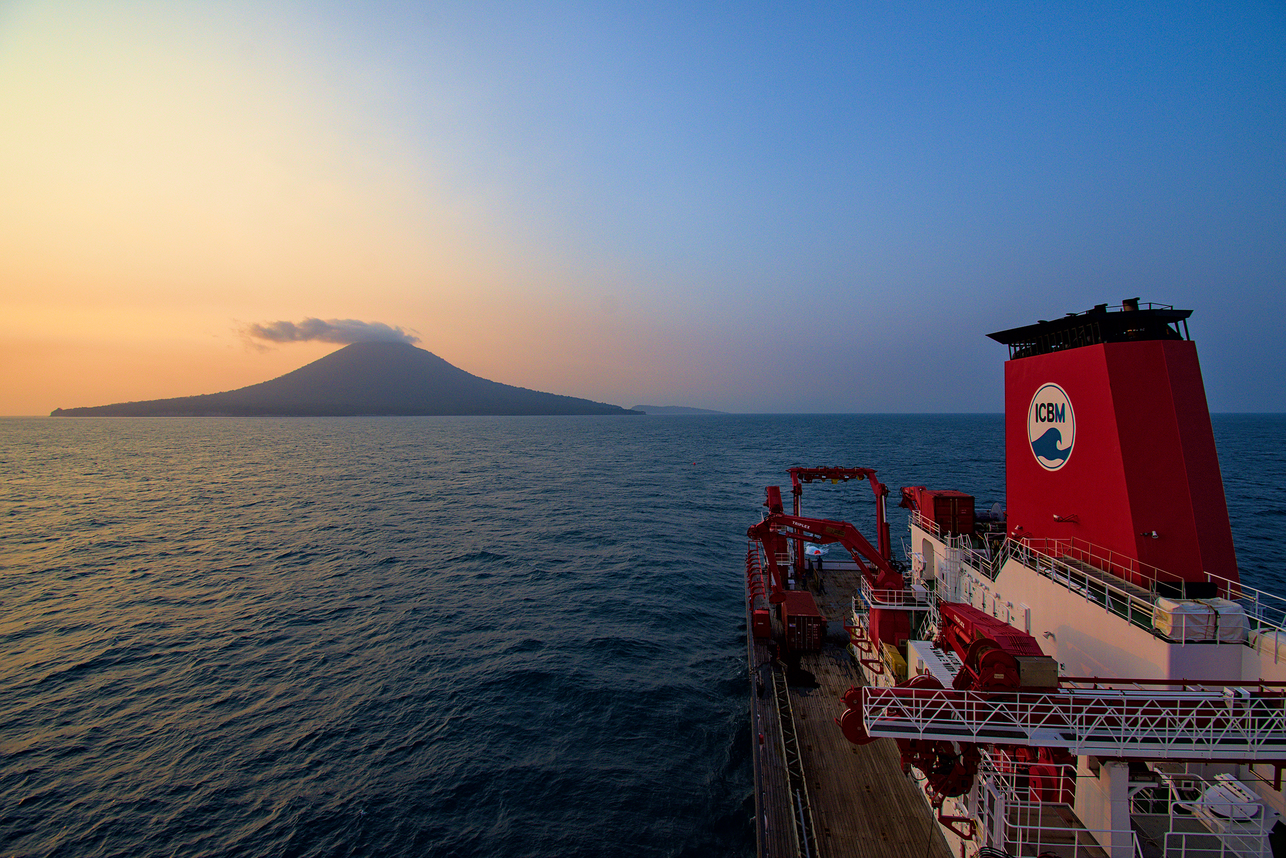 During the measurements: View of Anak Krakatau from on board the RV SONNE. Photo: Jonas Preine (University of Hamburg)