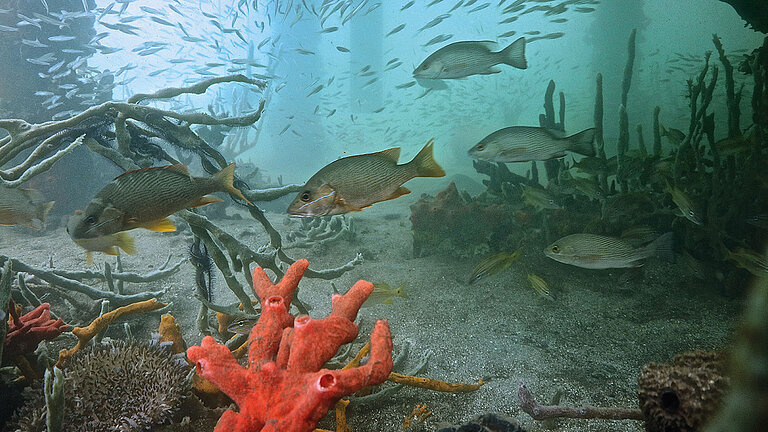 GEOMAR research covers a unique range of physical, chemical, biological and geological ocean processes. Members of the four research divisions Ocean Circulation and Climate Dynamics, Marine Biogeochemistry, Marine Ecology and Dynamics of the Ocean Floor cooperate in the three core themes Ocean and Climate, Marine Ecosystems and Biogeochemical Cycles and Seafloor Hazards and Benefits as well as the four Integrative Research Foci Atlantic Ocean Upwelling, Marine Carbon Sinks, Digital Twin Ocean and Metals in the Ocean. All work focuses on the open “blue” ocean.