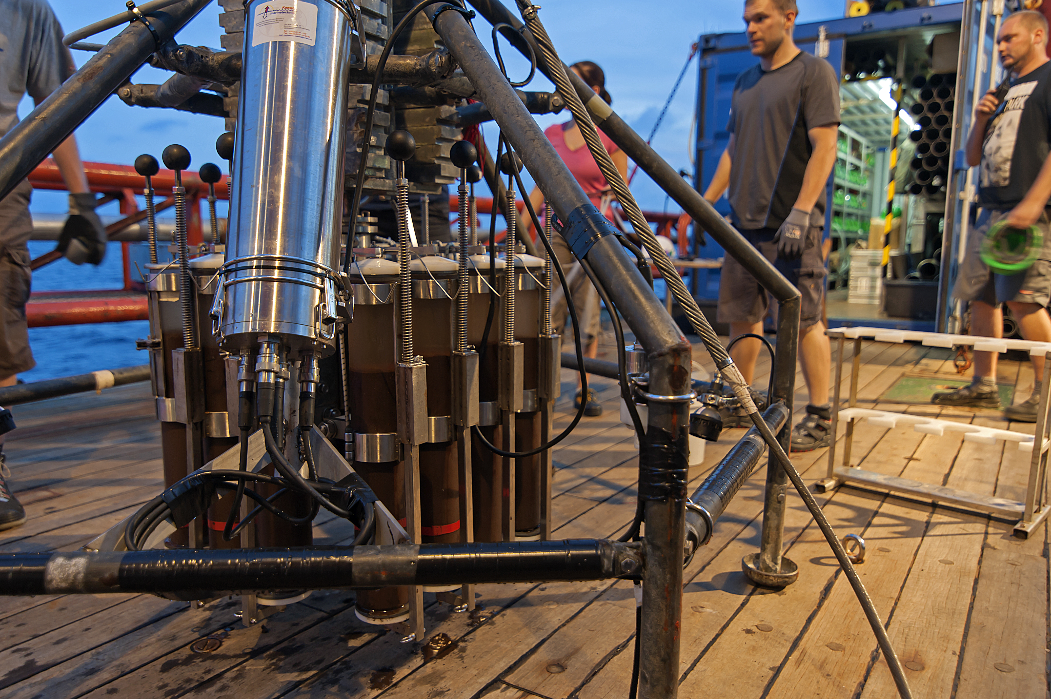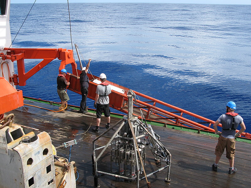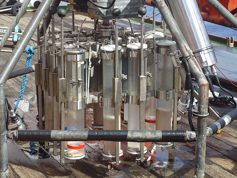 The Research Unit Paleoceanography runs different devices, which are lowered by cable to the ocean floor and allow to recover sediment samples: Multicorer (MUC), Box Corer (GKG), Gracity Corer (GC), Piston Corer (PC), and Kastencorer (KAL).