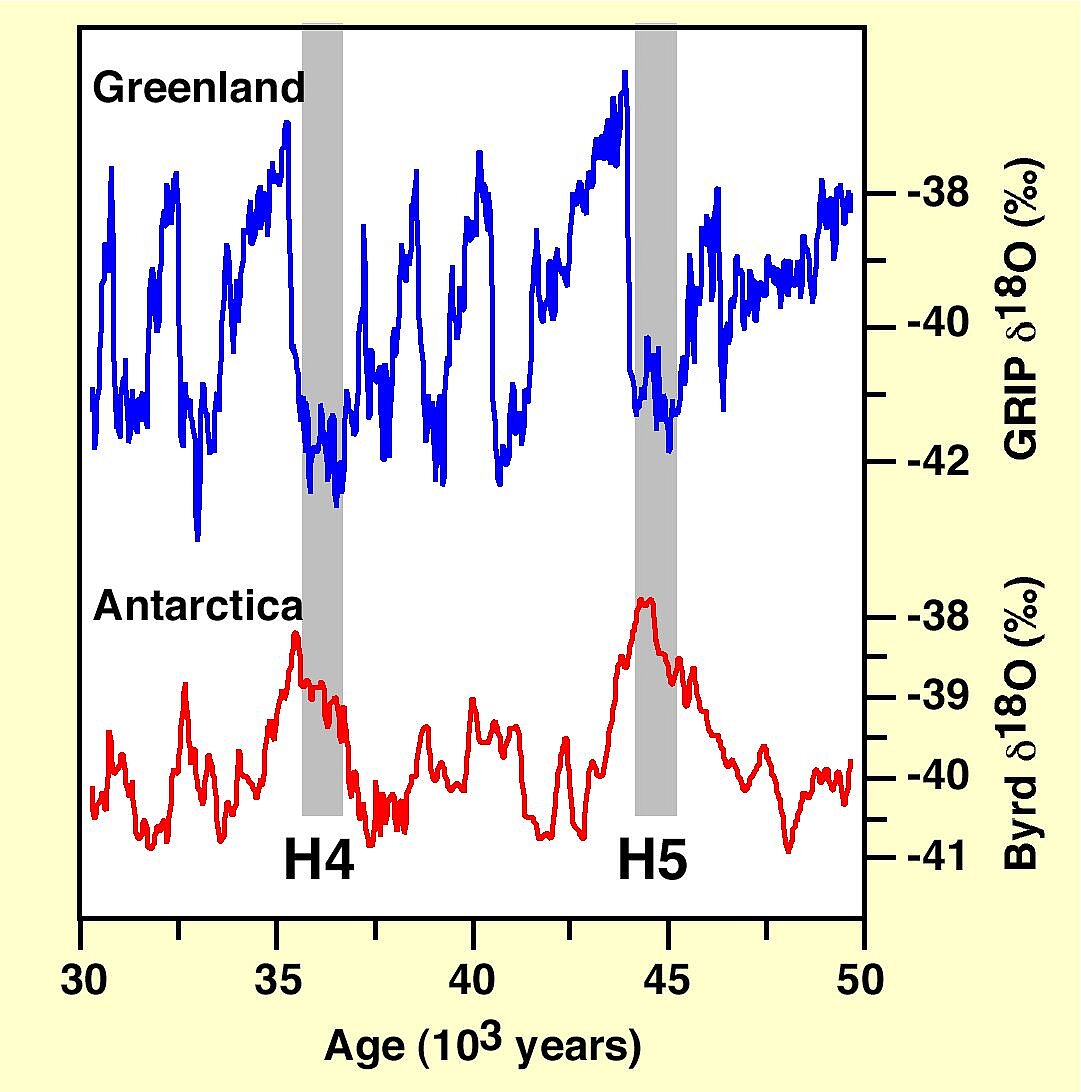 Knutti, R., Flückiger, J., Stocker, T.F. and Timmermann, A., 2004. Strong hemispheric coupling of glacial climate through freshwater discharge and ocean circulation. Nature, 430, 851-856.
