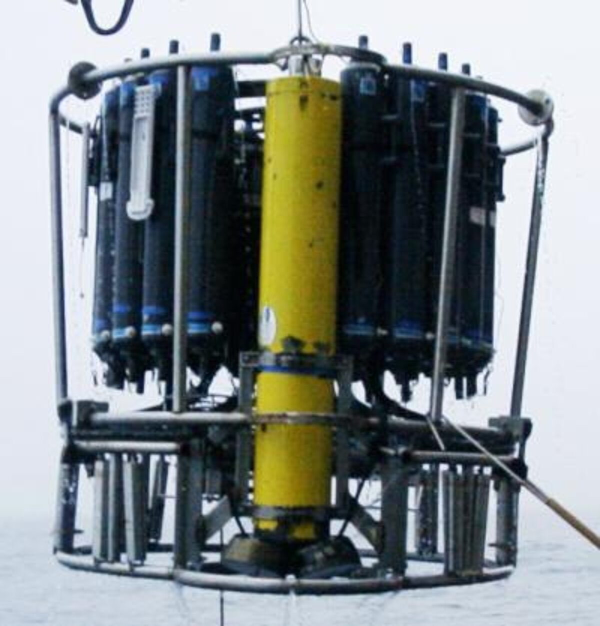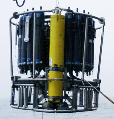 Another option is to mount an ADCP on the CTD rosette to lower it through the water column, the so-called LADCP (Lowered ADCP). The series of vertical profiles over shorter depth ranges is then merged to obtain a full-depth profile of the horizontal velocities. The entire CTD/LADCP package then provides a full-depth profile of hydrographic and velocity data.