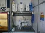 One room is mainly used for sample preparations (digestions, drying) and cleaning of lab-stuff. Two fume hoods are used for acid-works and two laminar-flow-boxes for clean-preparations.