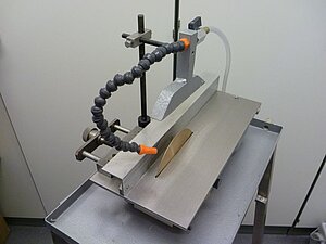 A mobile wet-cut diamond disc saw (maximum depth of cut: 4 cm, blade thickness: 1-2 mm) for precise subsampling and formatting of hand-sized samples, including slicing of coral drill cores for radiography. The water supply excludes recycling in order to minimize cross-contamination and uses depending on sampling purposes and required quality MQ-water, de-ionized or fresh water.
