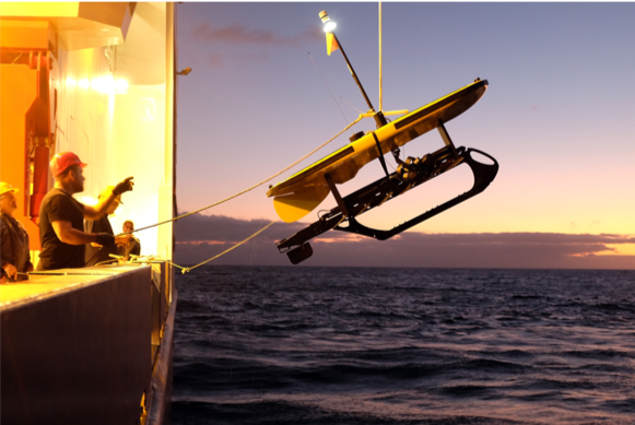 To allow the monitoring of the station’s state at the seafloor, the wave glider GeoSURF (Videolink) was integrated into the system. Its precise function lies in autonomously monitoring the seafloor station’s state of health, and in downloading the seafloor station’s data via modem and subsequently transferring the data to the lab using Iridium communication (Fig. 3).