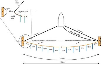 Digital GeoEel Streamer (Geometrics) with 1.5 m group offset allow high resolution data acquisition. Network switches in the breakouts allow to add more than one streamer per node.