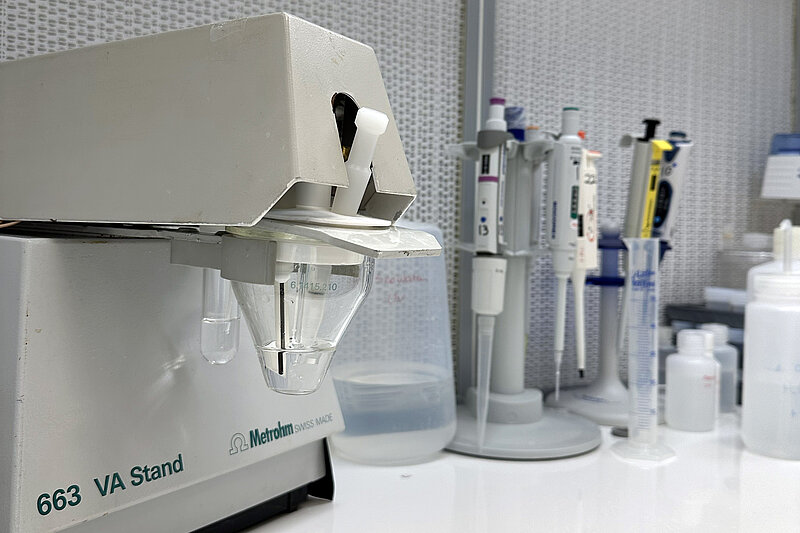 Our laboratory is equipped with analytical tools, including a voltammetric system designed for the detection of trace metals. The system is based on the Autolab potentiostats, an instrument capable of performing precise electrochemical measurements. We use this system to analyze trace levels of metal ions, making it ideal for applications in oceanography research. By use of a hanging mercury drop electrode (HMDE) and advanced software controls, we can detect and quantify even the lowest concentrations of metals such as iron and copper focusing on biogeochemistry of those elements.