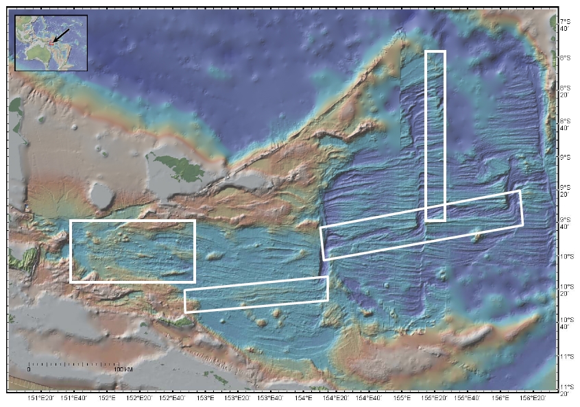 Present-day regions of continental break-up are generally covered by thick sediment layers, only the Woodlark Basin, east of Papua New Guinea (Fig. 1), comprises sediments that are thin enough to allow sampling and observations. In this project we use ship-based and AUV technology to study the links between tectonics, magmatism and hydrothermalism during break-up by sampling and observing the developing spreading axis and continental rift.