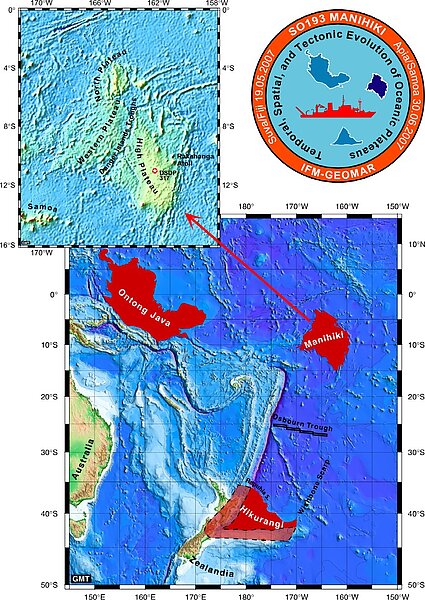 The research project SO193 MANIHIKI comprised investigations of volcanic structures, magmatic rocks and marine organism at the submarine Manihiki Plateau in the SW-Pacific. The Manihiki Plateau largely consists of volcanic rocks and is considered as a Large Igneous province (LIP). The geological studies carried out on a cruise with RV Sonne in May/June 2007 focussed on bathymetric mapping and hard rock sampling of all major geomorphological units of the plateau and adjacent seamounts. Subsequent morphological, volcanological, petrological, geochemical, and geochronological analyses aimed to reconstruct the origin and spatial and temporal evolution of the Manihiki Plateau and to characterize the relationship between the Manihiki Plateau and the other LIPs in the western and southwestern Pacific (Ontong Java Plateau off the Solomon Islands and Hikurangi Plateau off New Zealand). SO193 MANIHIKI was based on the results of prior studies (e.g., SO168 ZEALANDIA). The major objectives of the research project were (1) to contribute to a better understanding of LIPs and associated mantle processes, (2) to provide new informations on the origin, extent and effects of the huge Cretaceous magmatic events which caused the formation of LIPs, and (3) to enable a more detailed reconstruction of the geodynamic evolution of the SW-Pacific. Furthermore we wanted to test the hypothesis that the formation of the Manihiki Plateau has been part of the so-called „Greater Ontong Java Plateau Event“. This submarine event occured ~120 Mill. years ago and is the largest-known magmatic event on our planet which may have covered nearly 1% of the Earth’s surface with volcanism. Furthermore representative samples of the deep-sea meio- and macrofauna were used to investigate the diversity and the distributional patterns of the benthic invertebrate communities throughout the Manihiki Plateau. In comparison to results of previous expeditions, the species composition of these communities helped to characterise the Manihiki Plateau as a biodiversity 'hot spot' and a centre of origin for many invertebrate species.