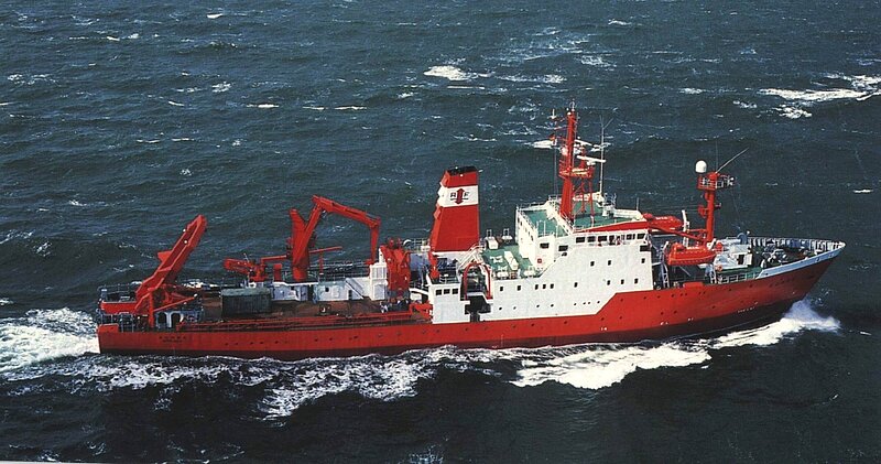 The research vessel "Sonne", 98 m long and 4734 metric tons, is one of the 4 large German research vessels together with the R/V “Polarstern”, R/V “Meteor” and the new R/V „Maria S. Merian“. The Sonne primarily operates in the Indian and Pacific Oceans. The ship, built in 1969 as a stern-fishing trawler and converted in 1977 into a research vessel, was completely reconstructed in 1991 and still ranks as one of the most efficient research vessels.