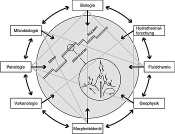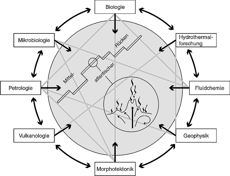 - The integrated study of pre-defined areas of groups covering the highly disparate fields of petrology, volcanology, geodynamics, geophysics, hydrothermalism, microbiology, macrobiology, oceanography, water chemistry and convection modelling.