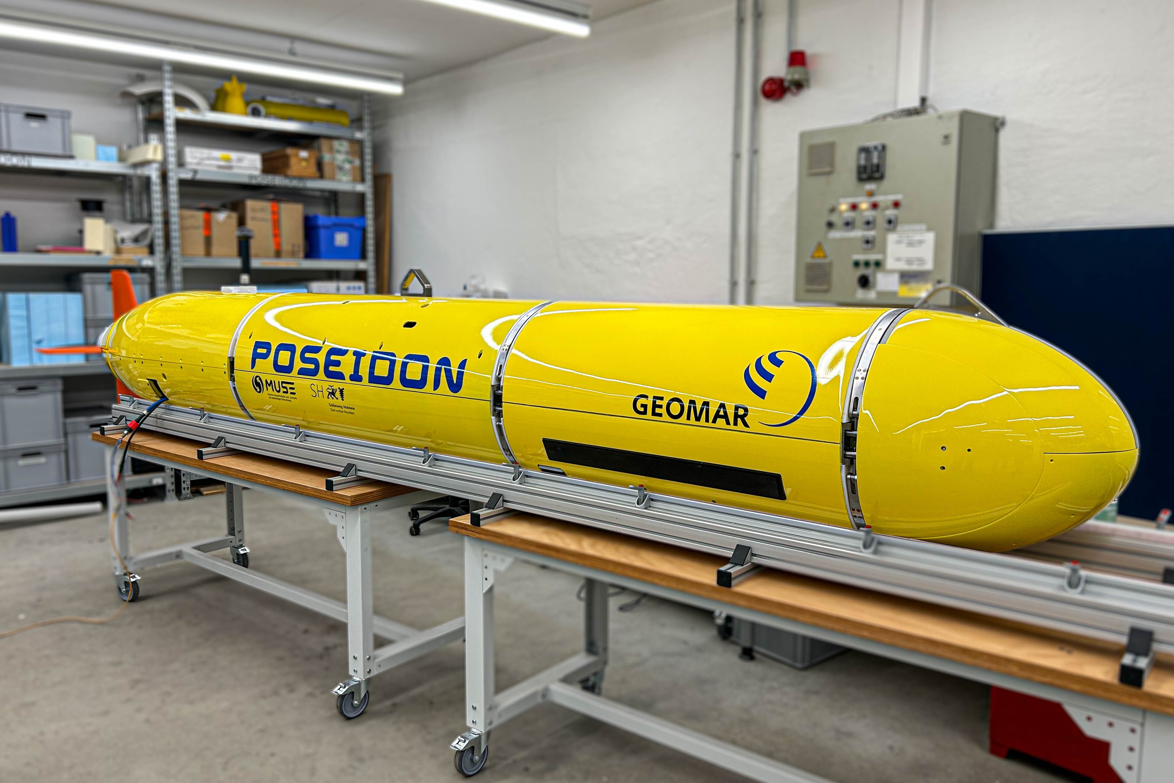 The former GEOMAR research vessel POSEIDON served for over 40 years and was decommissioned at the end of 2019 Under the name Humanity 1, it is currently used for refugee rescue in the Mediterranean Sea. The new autonomous underwater vehicle is expected to keep the POSEIDON name alive, continuing the research tradition. The go-ahead for the construction of AUV POSEIDON was given at the end of 2020 and will be financed by the proceeds from the sale of the Kiel research vessel by the state of Schleswig-Holstein.