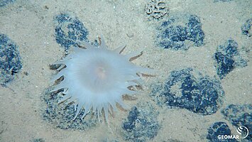 ROV KIEL 6000 was one of the main tools and accomplished 13 (leg 1) and 19 (leg 2) dives, respectively, in depths of around 4000 m. Main tasks were exploartion, mapping, documentation, sampling of sediments and fauna and facilitating several experiments and last but not least the deployment of numerous instruments (profilers, benthic chambers, sedimenttraps) and sensors (ADCPs, camera, current meters etc). In addition, the following instruments were integrated and could be tested: LIBS (Laser-induced breakdown spectroscopy) (LZH Hannover), Multibeam (GEOMAR Kiel), Optical Communication (AWI Bremerhaven, HYDROMEA).