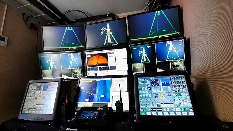 Main tasks of ROV KIEL 6000 was the search and rescue of the seismic transponders, which were mounted in 4m high tripdodes, deployed in 2015 dureing SO244.