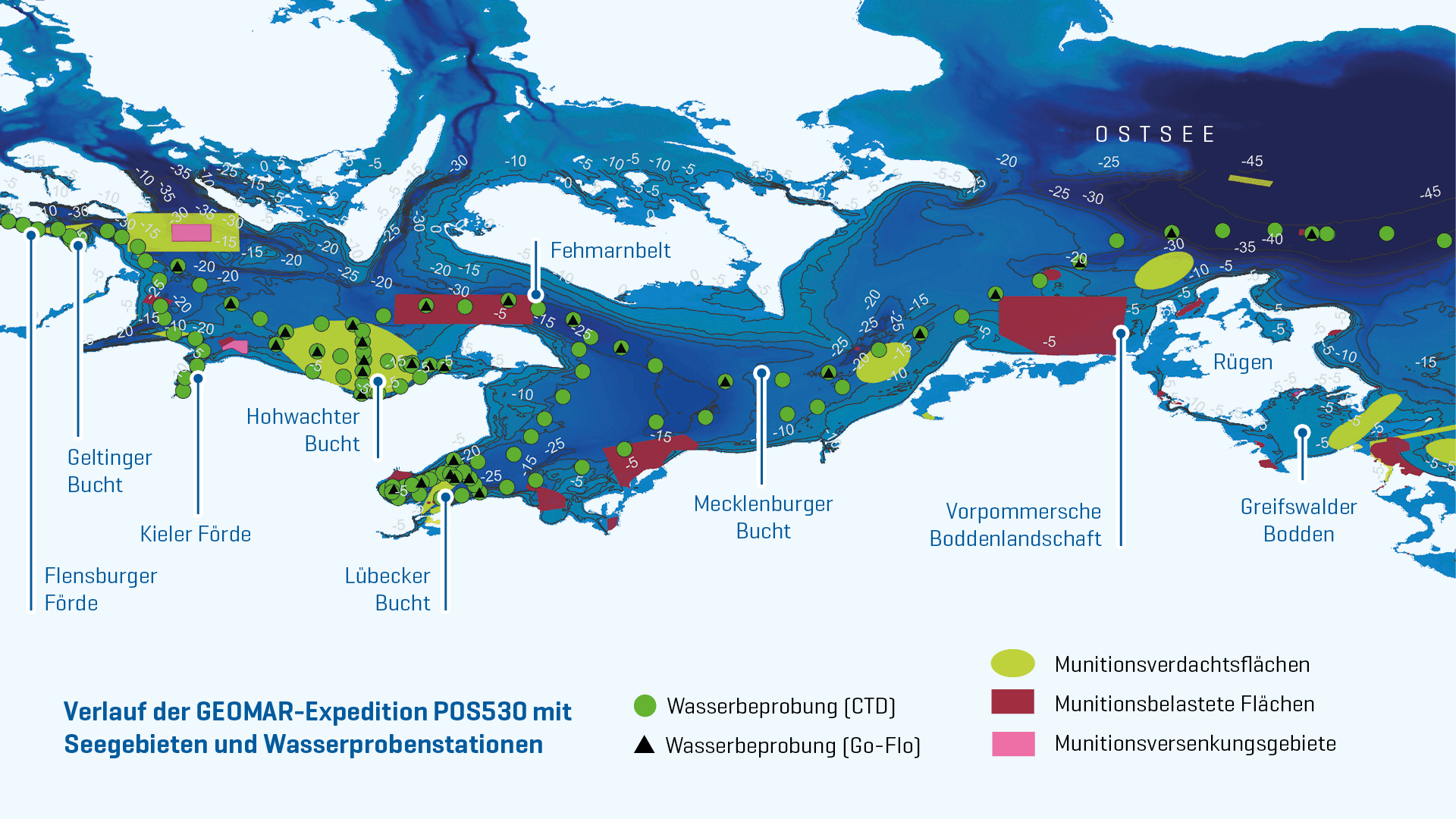 Im Rahmen unterschiedlicher Forschungsprojekte erfassen Wissenschaftler:innen des GEOMAR die Verteilung dieser Altlasten aus dem Zweiten Weltkrieg, untersuchen deren Auswirkungen auf die Umwelt und tragen zur Entwicklung von Möglichkeiten für die Bergung und Räumung bei.