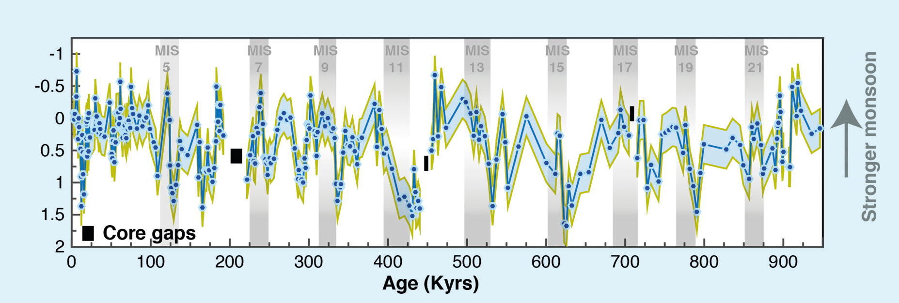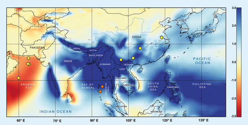 Monatelang schwere Regenfälle und dann ein halbes Jahr Trockenheit – der Indische Monsun mit seinen jahreszeitlich wechselnden Niederschlagsmengen und Windrichtungen beeinflusst das Leben der Menschen rund um den Indischen Ozean. Er ist von entscheidender Bedeutung für die Landwirtschaft und damit die Ernährung von mehreren Milliarden Menschen. Gleichzeitig können seine Auswirkungen wie Überschwemmungen und Erdrutsche in dicht besiedelten Gebieten katastrophale Folgen haben. Doch wie funktioniert dieses so wichtige Klimasystem genau? Und wie verändert es sich, wenn sich die Atmosphäre weiter erwärmt? Zu diesem Zweck wurde der Monsunniederschlag im Indischen Ozean rekonstruiert. Dabei zeigte sich, dass Erwärmungsphasen auf der Südhalbkugel und der Feuchtigkeitstransport über den Äquator hinweg nach Norden ein wichtiger Steuermechanismus der Monsunintensität der letzten Million Jahre waren. Diese Informationen sind wichtig für realistische Klimamodelle und Vorhersagen des zukünftigen Monsuns.