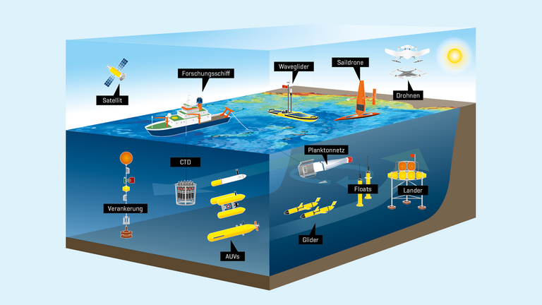 Damals wie heute sind Forschungsschiffe die wichtigste Plattform, um die biologischen, physikalischen, geologischen und chemischen Prozesse im Meer besser zu verstehen. Ob CTD-Sonden, ferngesteuerte Unterwasserfahrzeuge, autonome Tiefseedrohnen, bemannte Tauchboote oder am Meeresboden verankerte Systeme zur Langzeiterfassung - sie alle werden von Forschungsschiffen aus eingesetzt. Foto: Mario Müller/GEOMAR