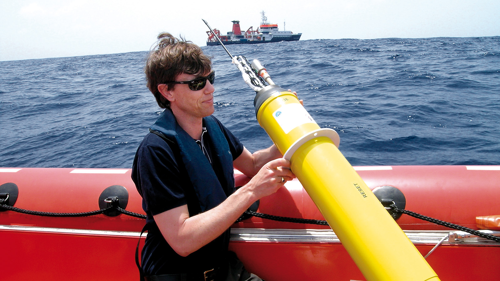 Seit Anfang der 2000er Jahre können durch den Einsatz automatisierter Messplattformen sehr viel mehr Daten, auch aus entlegenen Gebieten des Ozeans, gewonnen werden. Den Durchbruch brachte hier 2000 das internationale Argo-Programm mit derzeit mehr als 4.000 sogenannten Tiefendriftern. Tiefendrifter sind Bojen die mit der Strömung treiben. Sie tauchen regelmäßig auf und ab und messen Temperatur, Salzgehalt oder auch Sauerstoff bis in 2.000 Meter Tiefe über Jahre hinweg. Foto: Mario Müller/GEOMAR