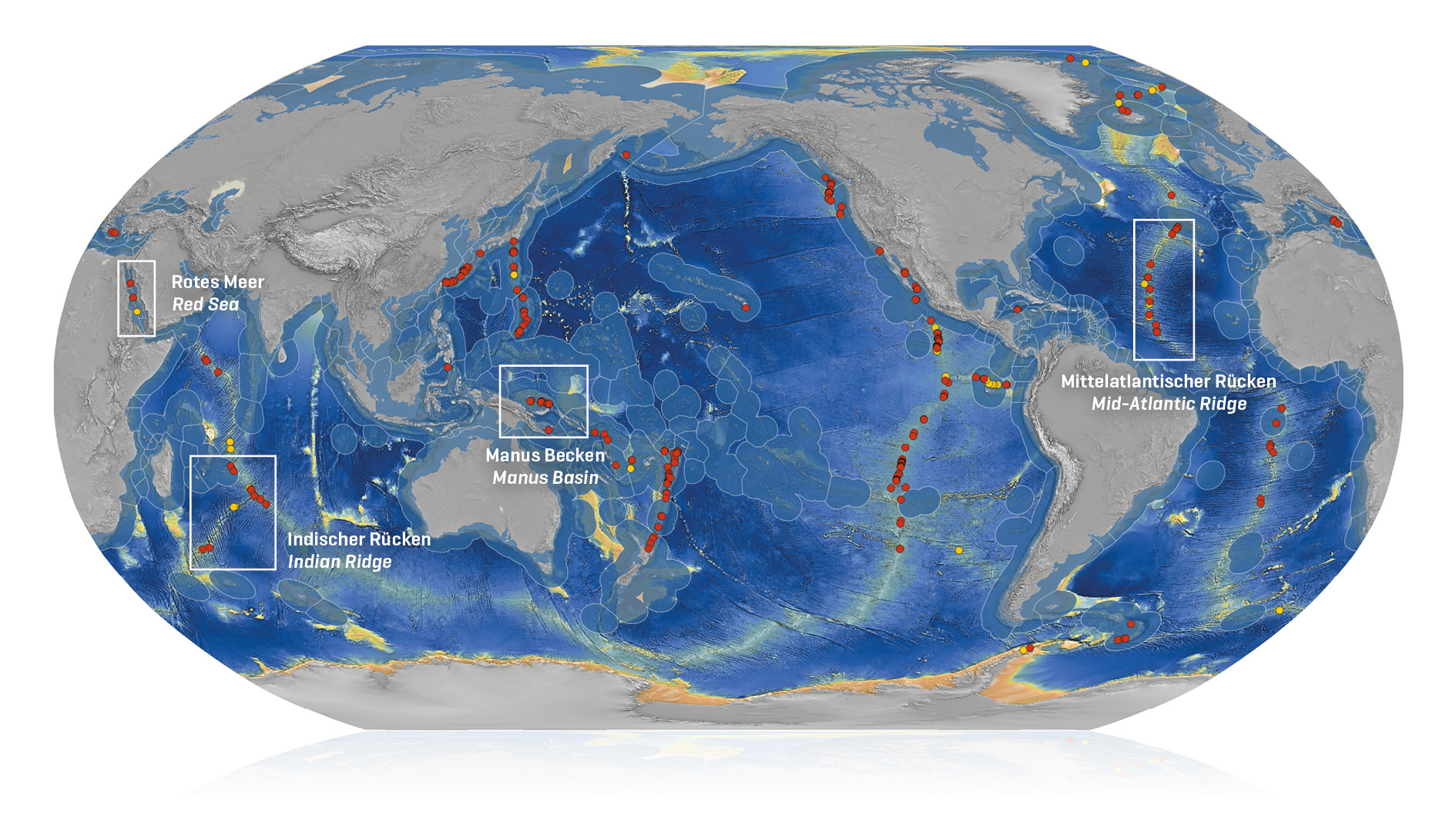 Im Jahr 1979 taucht das amerikanische Forschungstauchboot Alvin im pazifischen Ozean. Durch die kleinen Bullaugen der Druckhülle erblickte die Besatzung auf dem Meeresboden in rund 2.600 Metern Tiefe meterhohe Schlote, aus denen scheinbar schwarze Rauchwolken quollen. Die Wissenschaftler hatten die ersten hydrothermalen Quellen, sogenannte „schwarze Raucher“, entdeckt. Untersuchungen zeigten, dass sich rund um die Quellen Minerale ablagern und Vorkommen sogenannter Massivsulfide bilden. Inzwischen sind mehr als 390 Vorkommen in allen Ozeanen bekannt, wobei es aber gewaltige Unterschiede in der Größe der Vorkommen gibt. Hydrothermalquellen sind aber nicht nur Rohstofflieferant, sondern auch ein außergewöhnlicher Lebensraum.