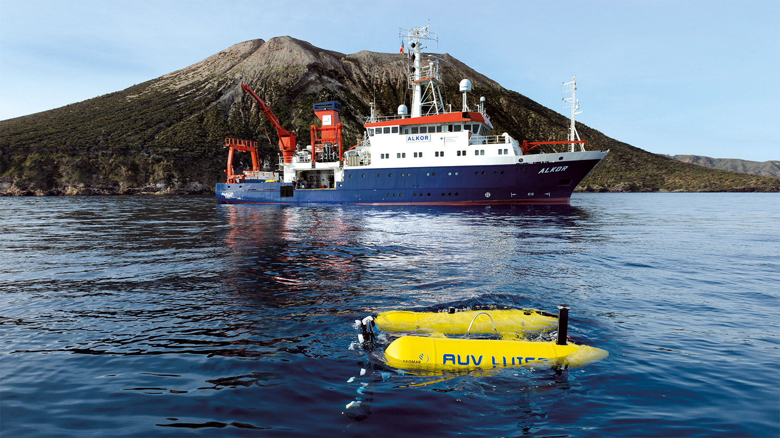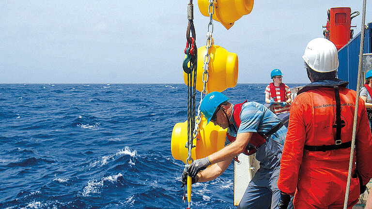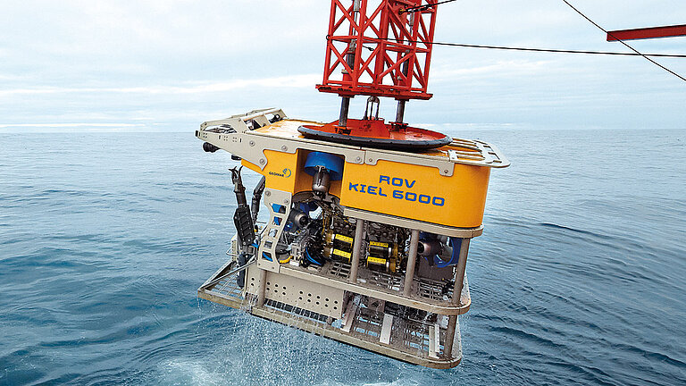 Auf ihren Expeditionen mit verschiedenen Forschungsschiffen setzen Meeresforschende unterschiedlichste Geräte ein, um Proben und Informationen für die Beantwortung physikalischer, chemischer, biologischer und geologischer Fragestellungen zu sammeln. Autonome Unterwasserfahrzeuge und Messinstrumente durchkreuzen den Ozean und senden Daten an Land, wo sie in Echtzeit verarbeitet werden. Verankerungen zeichnen Veränderungen an wichtigen Lokationen mitten im Meer kontinuierlich auf. Das GEOMAR vereint Expertise aus verschiedenen wissenschaftlichen und technischen Bereichen, um Geräte für die Meeresforschung auf dem neuesten Stand zu halten und Innovationen zu entwickeln.