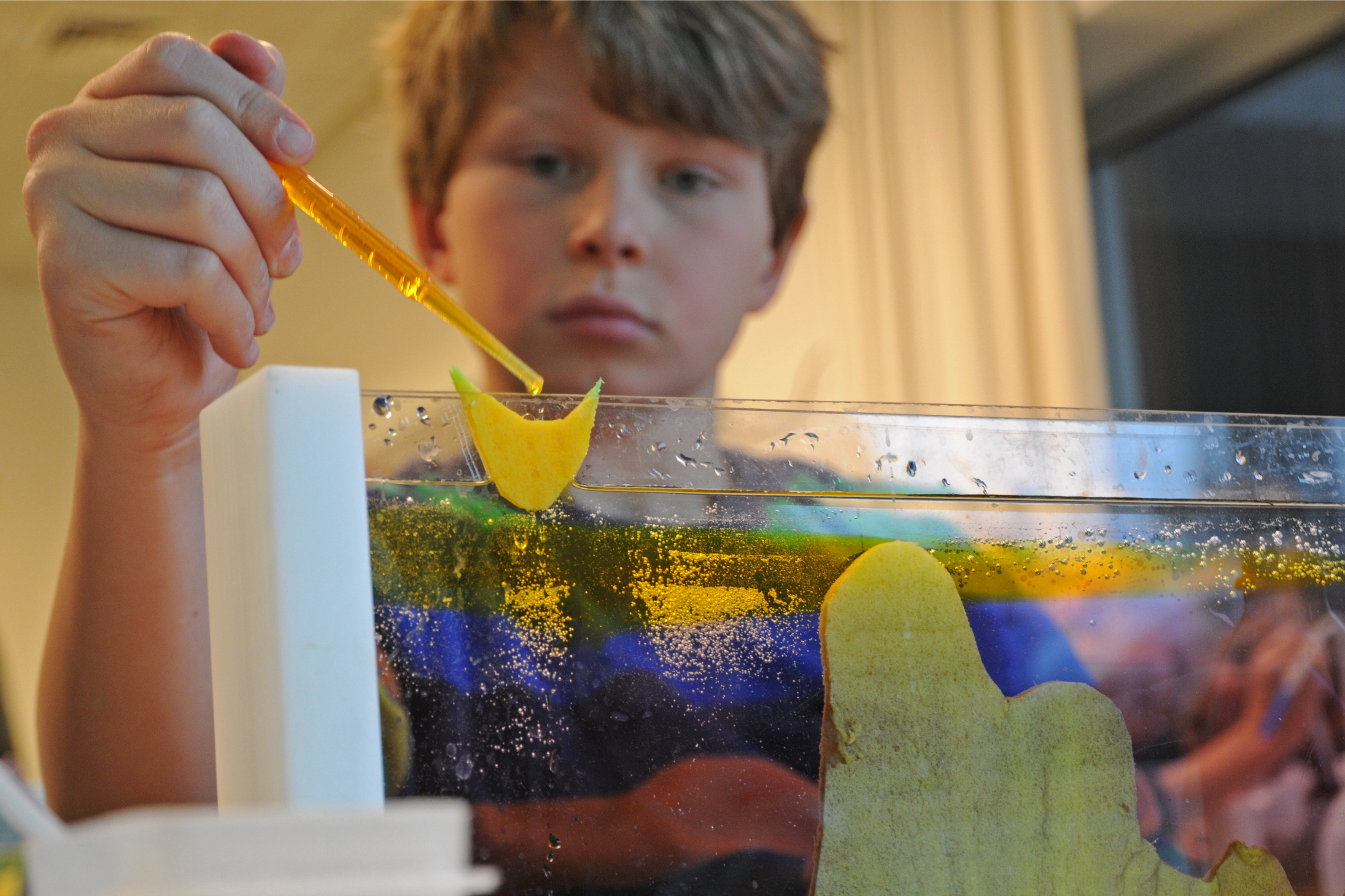 Der Projekttag mit der Max-Planck-Schule fand im Rahmen des zweiten bundesweiten Helmholtz-Tags der Schülerlabore statt. Dieser Tag erlaubt Schülern an insgesamt 30 Standorten der Helmholtz Gemeinschaft altersgerechte Einblicke in die Forschungsvielfalt der jeweiligen Zentren. Thema am GEOMAR war dieses Jahr die Entstehung sogenannter Sauerstoffminimumzonen im Ozean, die ein Schwerpunkt der Forschungsarbeit im Sonderforschungsbereich SFB 754 der Deutschen Forschungsgemeinschaft sind. Ein umfassender Eindruck von verschiedenen Facetten dieses Phänomens sollte den Auftakt zu dem Schulprojekt „Den Ozean entdecken“ liefern, das die Schüler sich für die nächsten Monate ausgewählt haben. „Wichtig war uns dabei nicht so sehr, spezifisches Wissen zu vermitteln,“ erläutert Dr. Joachim Dengg, zuständig für die Schulkooperationen des GEOMAR, „sondern vor allem Neugier zu wecken und bereits frühzeitig deutlich zu machen, dass sich naturwissenschaftliche Fragestellungen nicht immer in einzelne Schulfächer auftrennen lassen, von denen man später manche sogar gezielt abwählen kann.“ Deshalb erwartete die Schüler auch ganz bewusst ein Thema, wo Physik, Chemie und Biologie oft tief ineinander greifen, und wo ganz nebenbei auch noch Mathematik oder Englisch auftauchen können. „Die eigentliche Lektion soll sein: Augen auf in allen Schulfächern, denn man weiß nie, was noch alles wichtig sein wird“, so Dr. Dengg.