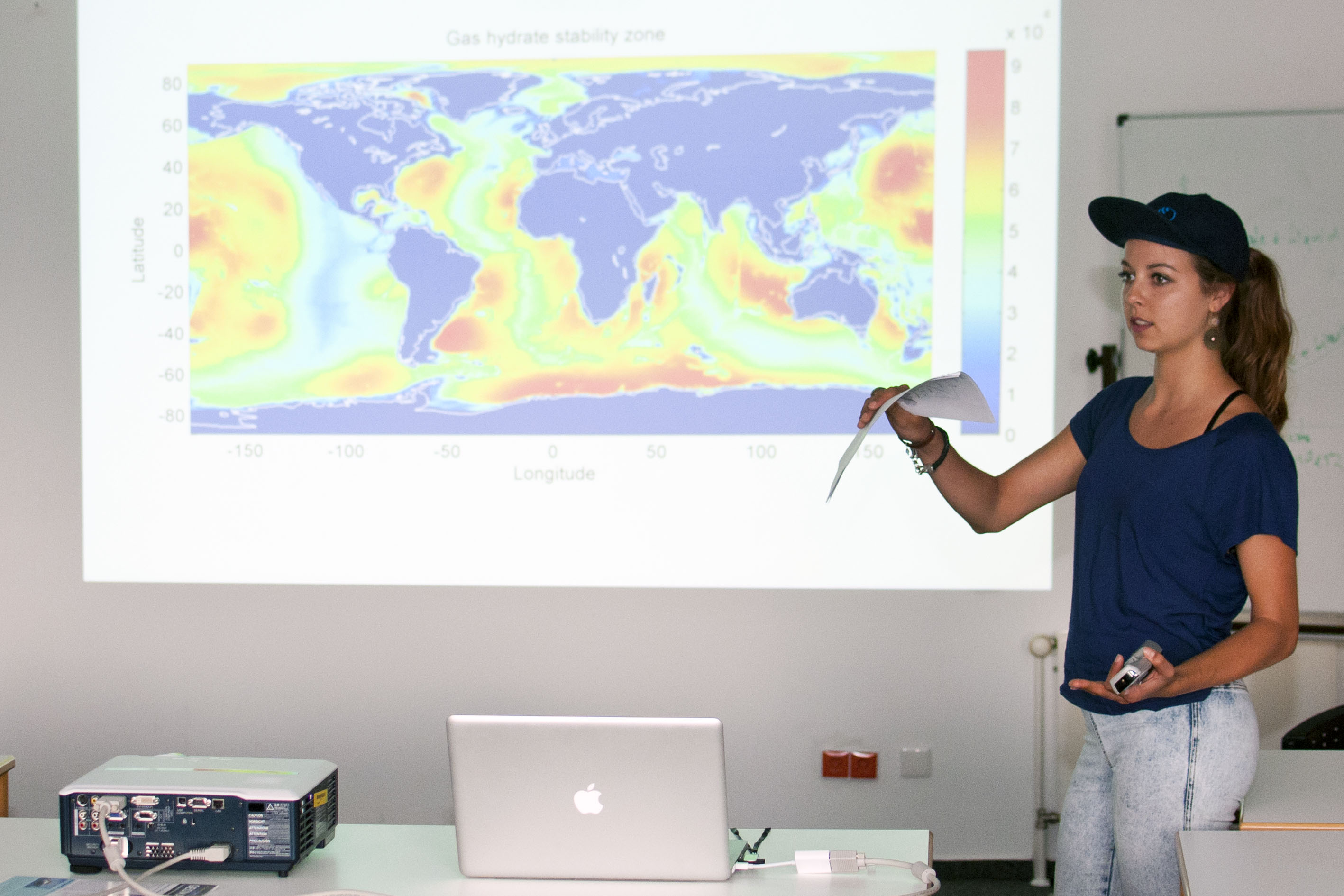 Mit einer Präsentation der Arbeitsergebnisse endete die Sommerschule heute Nachmittag. „Wir freuen uns, wie sehr sich die Jugendlichen für die Forschungsthemen interessieren und wie begeistert sie die praktischen Arbeiten angegangen sind“, sagte Dr. Sven Petersen, einer der Organisatoren der Sommerschule. Sein Kollege Dr. Steffen Kutterolf ergänzte: „Es gibt noch so viel Unbekanntes auf und in den Ozeanböden zu entdecken, dass wir in der Forschung unbedingt motivierten Nachwuchs brauchen“.