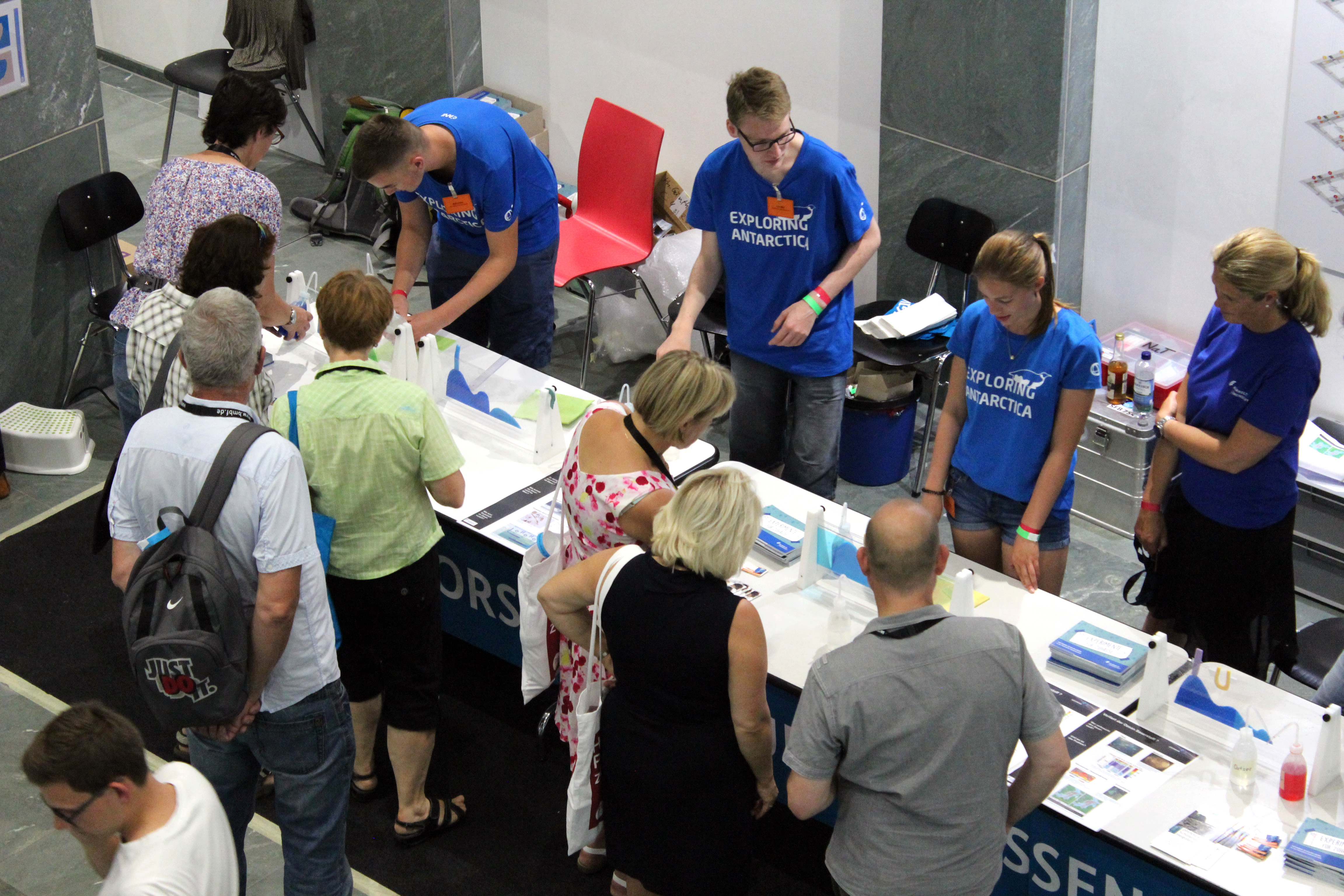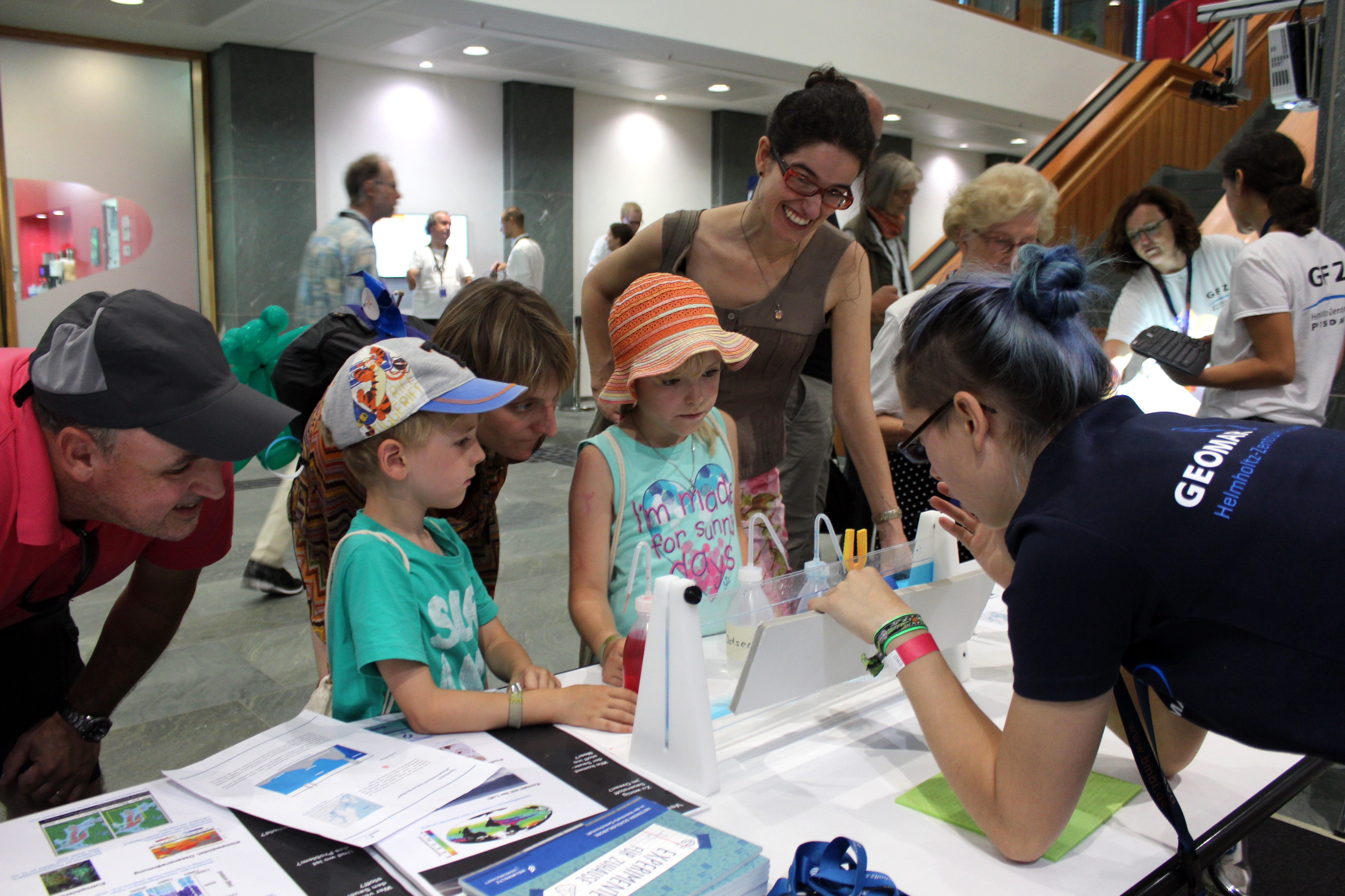 Die Ausstellenden ihrerseits freuten sich über diese große Aufmerksamkeit. Insbesondere die Jugendlichen, welche die Schülerlabore zur Unterstützung mitgebracht hatten, waren begeistert: „Es ist toll, wie sich die Menschen für unsere Themen interessieren!“, sagte Mark Kolbus aus Bremerhaven, dessen Schulunterricht in der gymnasialen Oberstufe zum Teil am Alfred-Wegener-Institut Helmholtz-Zentrum für Polar- und Meeresforschung (AWI) stattfindet. „Außerdem macht es einfach Spaß, den Leuten zu zeigen, was wir im Schülerlabor so machen“, ergänzte Anna Morawski, eine Schülerin der 11. Klasse, die bereits seit längerer Zeit im „Freitagsforscherclub“ des GEOMAR Helmholtz-Zentrums für Ozeanforschung Kiel mitarbeitet.