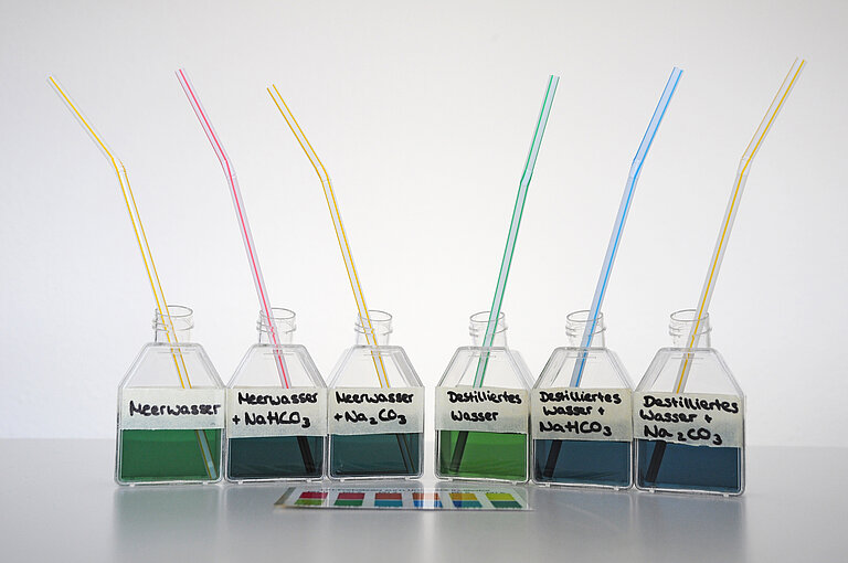 Experiment zur pH-Regulation des Meerwasssers. Foto: Maike Nicolai, GEOMAR