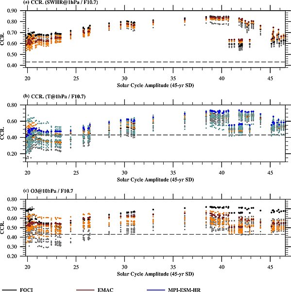 Huo, W., Spiegl, T., Wahl, S., Matthes, K., Langematz, U., Pohlmann, H., Kröger, J. (2025) "Assessment of the 11-year solar cycle signals in the middle atmosphere during boreal winter with multiple-model ensemble simulations." Atmospheric Chemistry and Physics, 25 (4), 2589–2612, https://doi.org/10.5194/acp-25-2589-2025Summary: