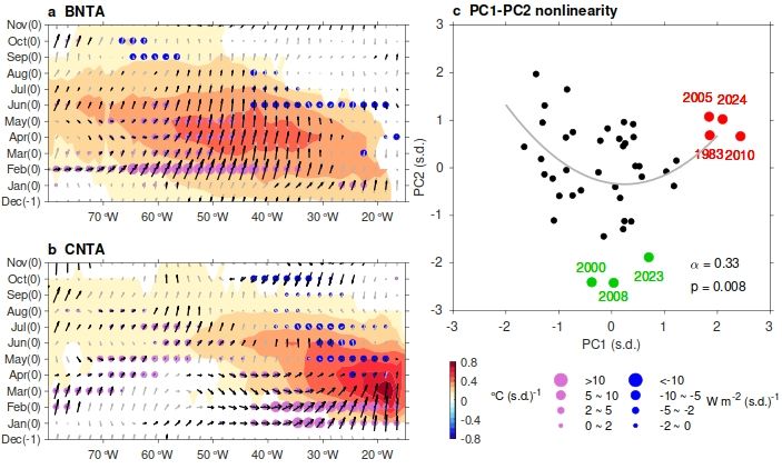 Liu, Y., M. J. McPhaden, W. Cai, Y. Zhang, J. Zhao, H. C. Nnamchi, X. Lin, Z. Li, J-.Y. Yang (2025). Basin-wide and coastal modes of north tropical Atlantic variability have distinct impacts onhurricanes. Communications Earth & Environment. 6, 549. doi.org/10.1038/s43247-025-02529-1.Abstract:
