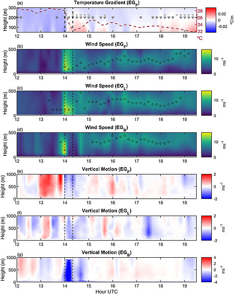 Weide Luiz, E., and Fiedler, S., 2023: Can convective cold pools lead to the development of low-level jets? Geophysical Research Letters, 50 (11), https://doi.org/10.1029/2023GL103252Summary: "Low-level jets (LLJs) typically occur at night due to strong surface cooling. This study provides the first observational evidence that LLJs can also be driven by convectively generated cold pools (CPs), areas of cool and dense air beneath precipitating clouds. CPs can favor temperature inversions with reduced friction of the winds with the surface, as a prerequisite for generating LLJs also during daytime."