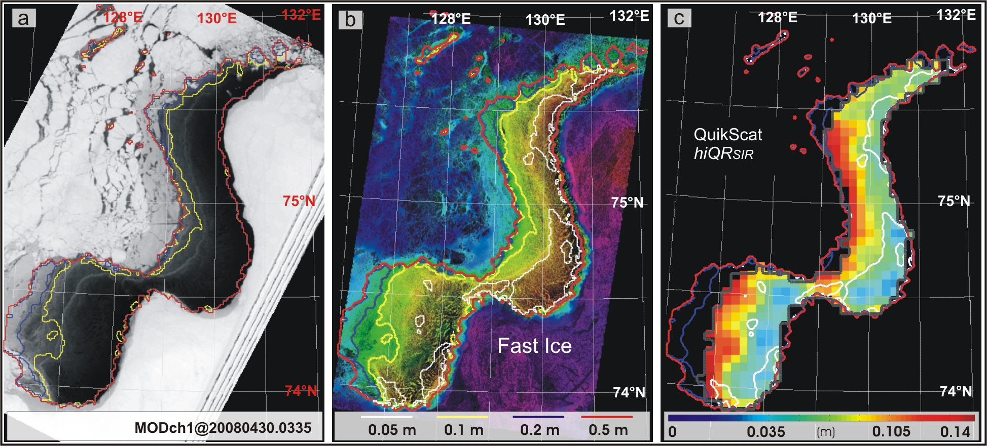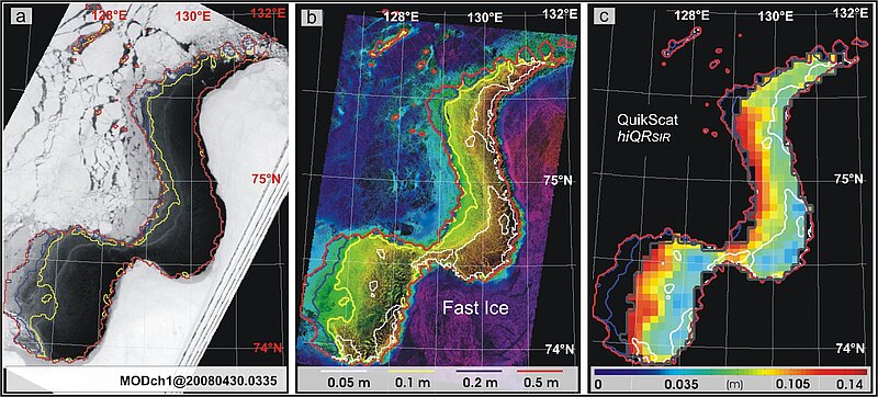 Im Arbeitspaket Fernerkundung werden die Variabilität der Dynamik (Häufigkeit des Auftretens, Öffnungsdauer, Fläche offenen Wassers) sowie die Produktion von neuem Eis in den Polynjen der Laptewsee auf langen Zeitskalen (ca. 30 Jahre) untersucht. Als Grundlage hierfür dienen Satellitendaten aus verschiedenen Spektralbereichen, mit stark unterschiedlichen geometrischen Auflösungen. Die Untersuchungen haben weiterhin zum Ziel, bestehende Methoden zur Identifikation von Polynjen aus Mikrowellendaten und zur Quantifizierung der Eisdicken von dünnem Eis zu verbessern und bzgl. radiometrischer Eigenschaften (v.a. Salinität) an die lokalen Gegebenheiten anzupassen.
