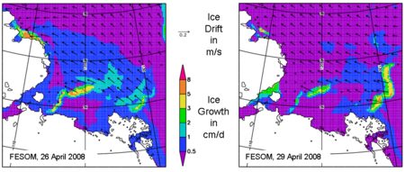 Ein langfristiges Ziel im Rahmen dieses Arbeitspaketes ist die hinreichend genaue Bestimmung der Eisproduktion in den Polynjen (und damit des Salzeintrags, der sich daraus ergibt), deren Anteil an der gesamten Eisproduktion in der Laptewsee (über die Untersuchung des Einflusses von Eisrinnen innerhalb des Packeisgebietes) sowie eine Abschätzung der Bedeutung der Laptewsee Polynjen für den Meereishaushalt der Arktis.