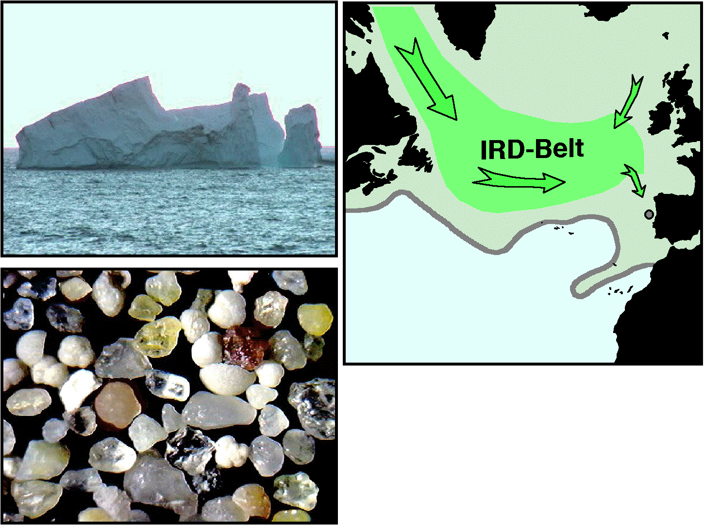 Bond, G.; Heinrich, H.; Broecker, W.; Labeyrie, L.; McManus, J.; Andrews, J.; Huon, S., Jantschik, R.; Clasen, S., Simet, C.; Tedesco, K.; Klas, M.; Bonani, G., and Ivy, S., 1992. Evidence for massive discharges of icebergs into the North Atlantic Ocean during the last glacial period. Nature, 360: 245-249.