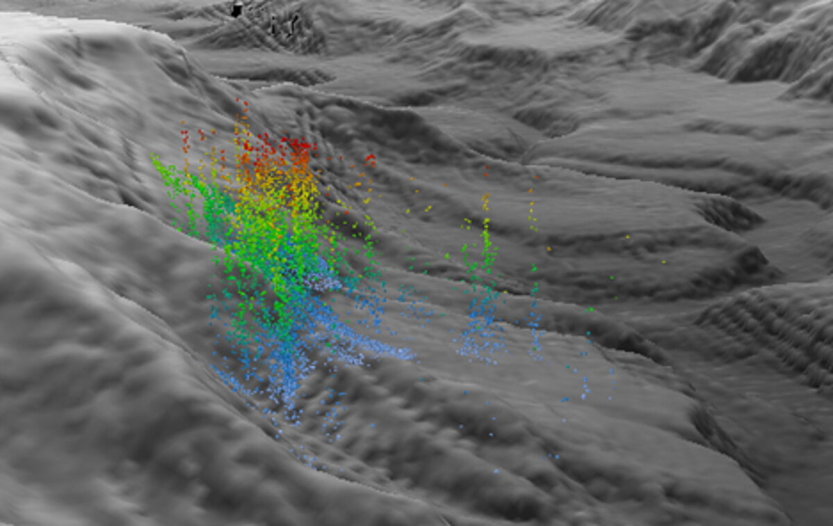 • Volumetrische Erfassung von Gasfahnen in der Wassersäule zur Quantifizierung von Gasflüssen am Meeresboden. Dazu werden die Signale von Multibeam-Fächerecholotsystemen entsprechend kalibriert und ausgewertet.