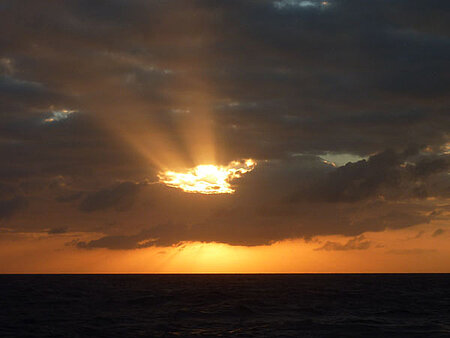 Wir sind bereits über 2 Wochen unterwegs, der Körper scheint sich an die Bewegungen des Schiffes gewöhnt zu haben, niemand hat bisher über Seekrankheit geklagt. Die METEOR gleitet über das tiefblaue Wasser der Karibik hinweg und der Himmel liefert sich einen Wettlauf mit dem Meerwasser, wer das schönere Blau aufweist. Die Sonne verwöhnt uns schon ab dem Morgen mit ihrer Wärme. Nach einem langen kalten Winter in Deutschland ist es nicht verwunderlich, dass die Ersten bereits nach dem Frühstück die Morgensonne genießen und sich die frische Brise um die Nase wehen lassen, bevor sie in Ihre Labore oder an ihre Schreibtische verschwinden und die Nachtschicht in ihr Bett. So auch an diesem Morgen, an dem doch alles anders sein sollte, als an den bereits vergangenen Tagen. Die Brise hat aufgefrischt und der Wellengang hat zugenommen. Bereits der Weg hinunter in die Messe zum Mittagessen kommt einer gleichgewichtstechnischen Meisterleistung nahe – der Körper versucht den Bewegungen des Schiffes nach zu kommen und zeigt seine ersten Schwächen auf. So fällt es ihm schwer alle Bewegungen des Schiffes in adäquater Form auszugleichen und nimmt doch ab und an mal eine Wand mit oder verlagert das Gewicht genau im falschen Moment in eine Richtung, in die das Schiff grade eben nicht möchte. So eiere ich die drei Decks von meiner Kabine hinunter in die Messe, in der sich wie jeden Tag alle zum Essen versammeln. Doch etwas ist Anders als sonst, die Fenster der Messe, die knapp über dem Wasserspiegel liegt, sind verschlossen und in der sonst von Sonne durchfluteten Messe ist es dunkel. Nur künstliche Beleuchtung erhellt den Raum.Es ist lustig anzuschauen, wie Suppentassen, Getränkegläser oder auch Teller ausbalanciert werden und sich alle anstrengen, ihr Essen unversehens an ihren Platz zu bekommen. Die Bewegungen des Schiffes sind bisher für mich erträglich gewesen, da ich immer irgendwie ein Auge aus dem Schiff auf den Horizont geworfen habe, ein Tipp, den ich zum Beginn der Reise bekommen hatte, der gegen Seekrankheit helfen soll. Doch wohin soll mein Blick nun schweifen? Alles ist dunkel. Mein Körper fängt an mir zu signalisieren, dass die Schiffsbewegungen heute nicht mein Freund werden. Ich schlinge mein Essen hinunter, um so schnell wie möglich die Messe verlassen und nach draußen zu können, vielleicht meine Rettung.Es hilft wirklich und ich beginne mich wieder besser zu fühlen. Aber das Wetter macht es selbst mit Lichtschutzfaktor 50 unmöglich, bis zu meiner Nachtschicht draußen zu verbringen. So verschwinde ich auf die Kammer und wende Tipp 2 gegen Seekrankheit an – Das Bett. Erstaunlicherweise hilft auch dieser Tipp, aber mir wird langsam bewusst, dass es kein aktives Bekämpfen des Unwohlseins ist, sondern ein aktives Verschieben des Problems. Abendessen: Ich verlasse mein Bett, dass Schaukeln des Schiffs hat weiter zugenommen und meine Hypothese sollte Recht behalten. Mein Körper verkraftet die Umstellung nicht richtig und das Abendessen verbessert den Zustand auch nicht wirklich. Wie gerne würde ich wieder in mein Bett oder die Augen dem Horizont zuwenden. Doch keine Chance – die Arbeit ruft – also ab bis fast auf die Brücke, in die Lotzentrale, wo Parasound, ein Sedimentecholot (zeigt die Strukturen des Sedimentes im Untergrund an) und SIMRAD – ein Fächerecholot (bildet die Strukturen des Ozeanbodens so ab, dass man ihn sich in 3D ansehen kann) stehen. Dachte ich vorher, die Schiffsbewegung ist in geschlossenen Räumen schlimm, so wurde ich eines besseren belehrt. Hier oben am fast höchsten Punkt des Schiffes wurde sie unausstehlich und zeigte mir ihr aller schlimmstes Gesicht. Nach 30 Minuten war es für mich aus – die eigentlich zu kontrollierenden Monitore entfielen meinem Blickwinkel. Hauptaufgabe wurde Herr meines Körpers zu werden, und alles bei mir zu behalten. Es gab keine Chance für mich, den Job ernsthaft wahrzunehmen, so ließ ich mich ablösen und verschwand kreidebleich aus der Lotzentrale in Richtung meines Bettes. Doch die Seekrankheit hatte mich eingeholt. Selbst den von mir sonst so geliebten Sonnenuntergang aus dem Fenster der Lotzentrale hatte ich verpasst. Leider halfen Tipp 1 und 2 mir an diesem Abend nicht noch einmal, die Seekrankheit hatte die Überhand gewonnen und ich musste mich geschlagen geben für den restlichen Abend und die Nacht.Der nächste Morgen wurde genutzt um den Schiffsarzt aufzusuchen, mich mit Medikamenten zu versorgen und auf Zwieback und Tee umzusteigen. Wie vom Doc prophezeit verschwand die Seekrankheit relativ schnell.So genieße ich seitdem die See wieder in vollen Zügen und auch hohem Wellengang bin ich nun gewachsen.