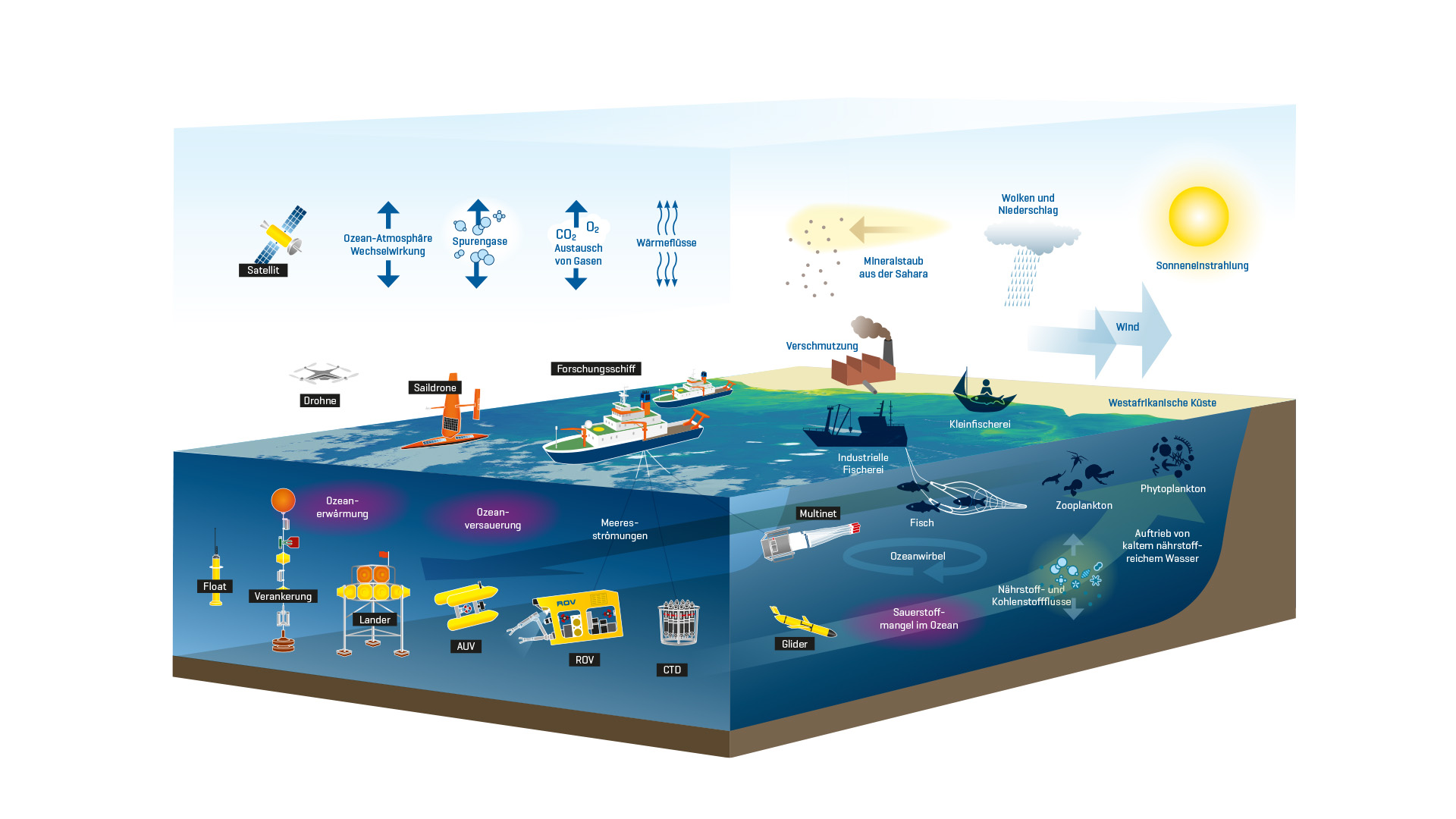 - Aktive Partnerschaft mit westafrikanischen Forschern, Interessengruppen und Meeresforschungsinstituten: Westafrikanische Experten werden wesentliche Partner bei der Mitgestaltung sein. Sie sind eingeladen, Partner des FUTURO-Experiments zu werden.