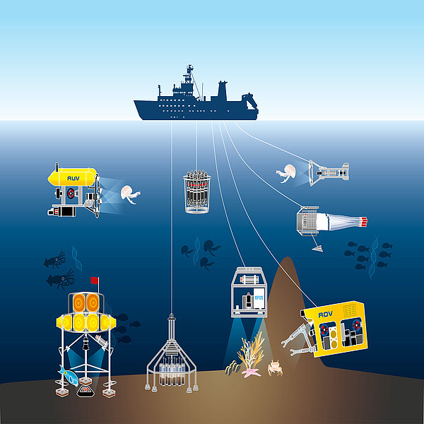 Um einen besseren Einblick in Tiefseegemeinschaften zu bekommen führen wir Tiefsee-In-situ-Beobachtungen während Expeditionen im Atlantik, Pazifik und im arktischen Meer durch. Diese Observationen erfolgen mit Kamerasystemen die an verschiedensten Instrumenten, wie z.B. Tauchbooten oder so genannten freefall landers, befestigt sind, um Tiefseeorganismen in ihrer natürlichen Umgebung zu dokumentieren.