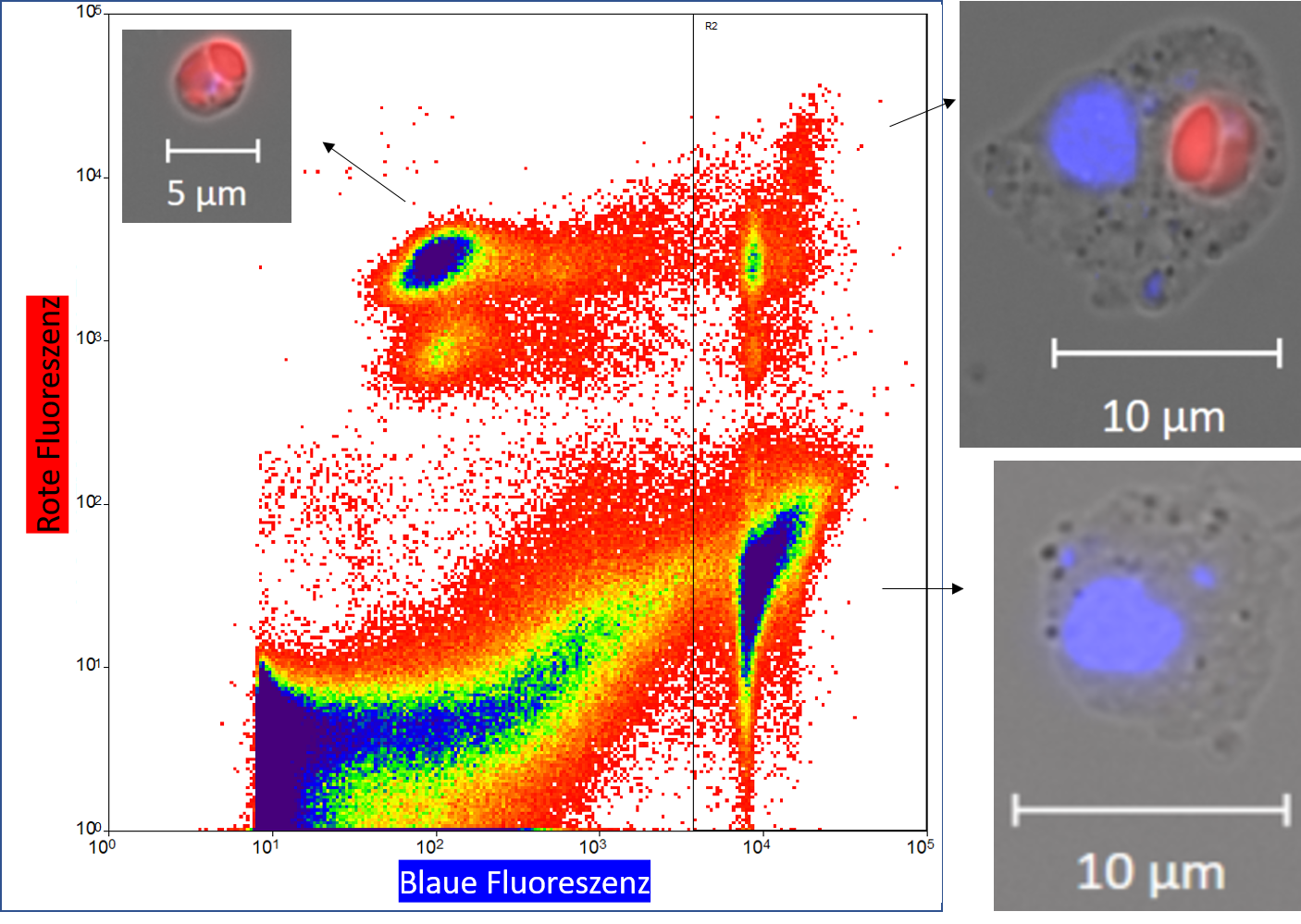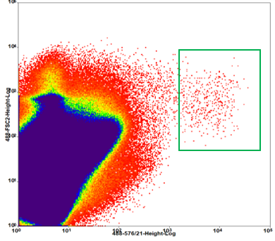 Density plot - Stammzellen aus den Därmen von Fliegen wurde anhand ihrer GFP-Markierung heraussortiert und angereichert (in Kooperation mit der AG Prof. T. Roeder/ CAU) © K. Bayer