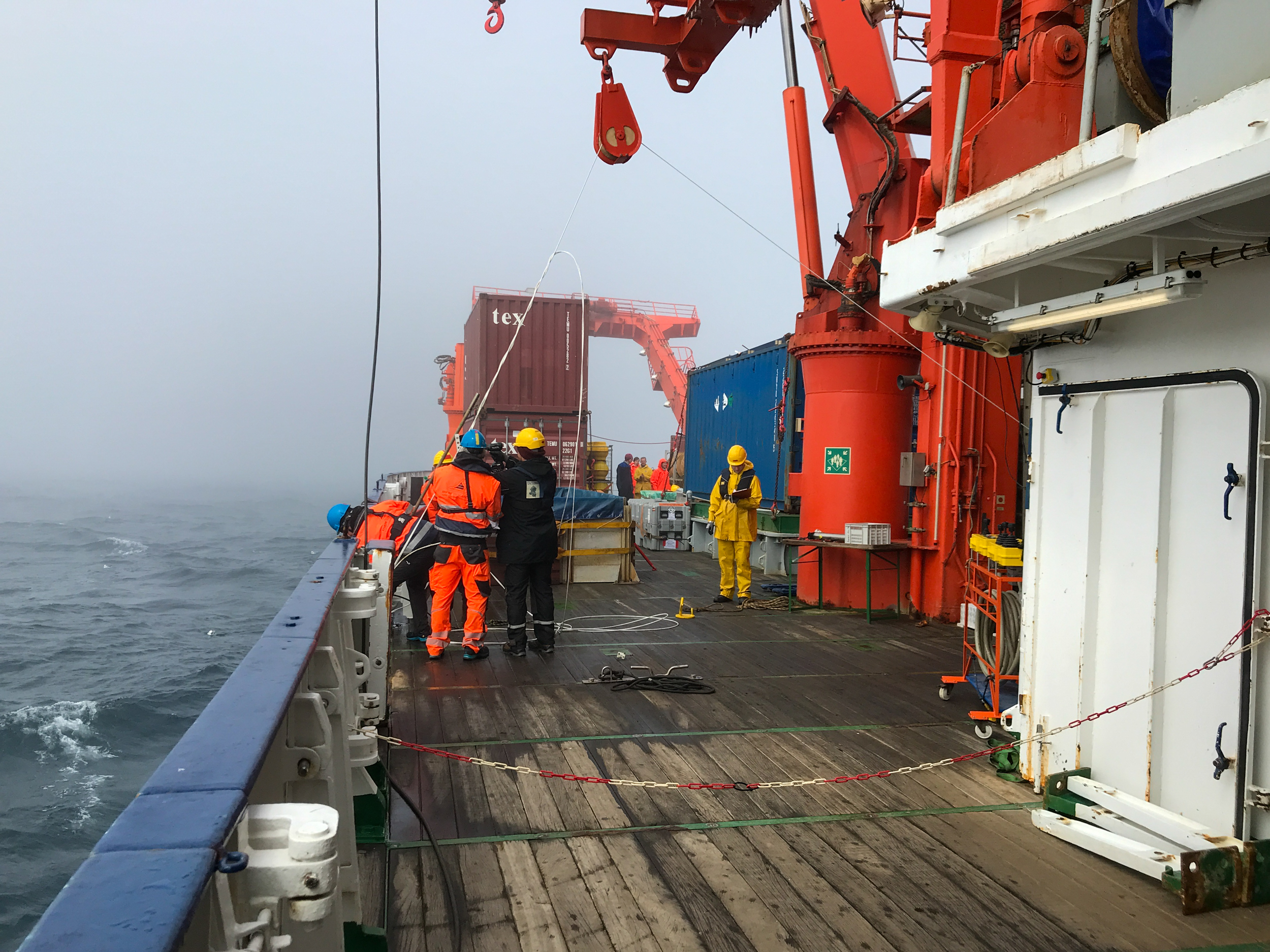 Seit 1997 betreibt das GEOMAR vor der Küste Labradors (Kanada) ein Langzeit-Ozean-Observatorium mit sieben Mess-Stationen, verteilt über eine Länge von 120 Kilometern. Während der Expedition MSM129 werden die Daten ausgelesen. Foto: Johannes Karstensen