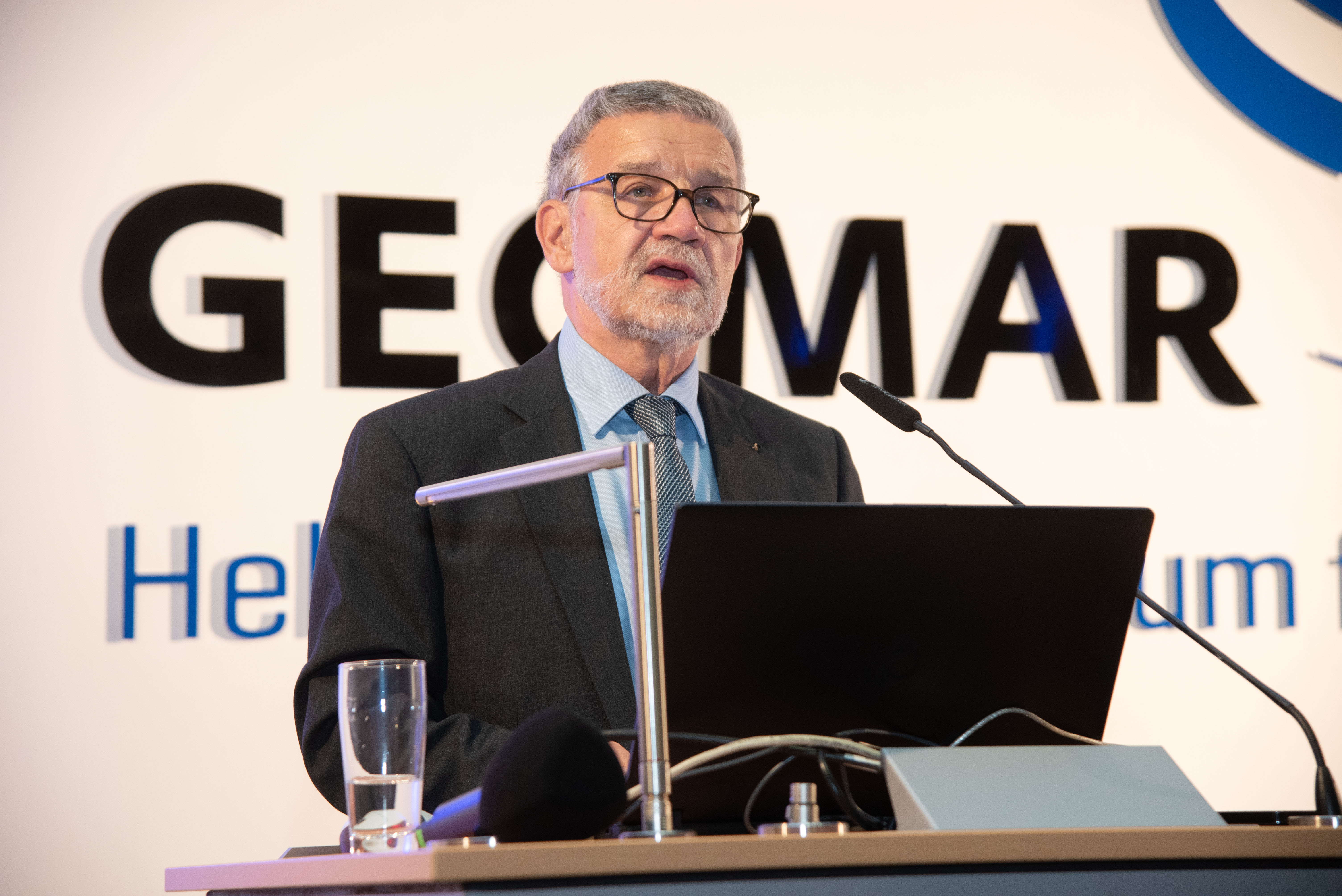 Schleswig-Holsteins Ministerpräsident Daniel Günther würdigte den Preisträger als engagierten Klimaschützer und Unterstützer der Wissenschaft. Foto: Thomas Eisenkrätzer, GEOMAR